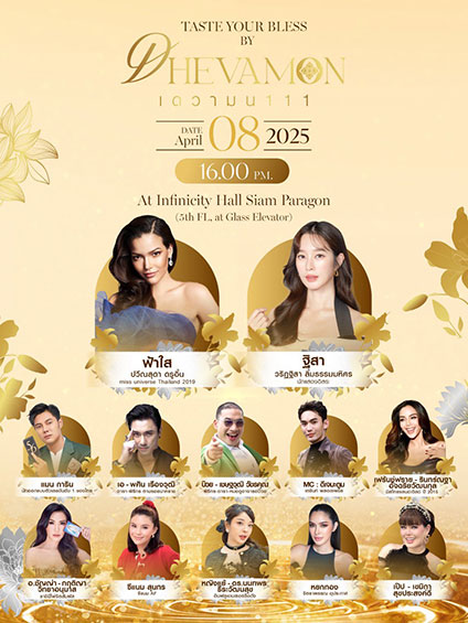 ร่วมสัมผัสประสบการณ์ไม่เหมือนใคร ลิ้มรสสัมผัส ดื่มด่ำความสุข และรับพลังแห่งความสิริมงคลไปกับ Dhevamon111 (เดวามน111) ในวันอังคารที่ 8 เมษายน 2568 ตั้งแต่เวลา 16.00 น. เป็นต้นไป ที่ Infinicity Hall ชั้น 5 ศูนย์การค้าสยามพารากอน ติดตามข้อมูลเพิ่มเติมได้ ทาง Facebook: Dhevamon เดวามน111 หรือLine: @Dhevamon111