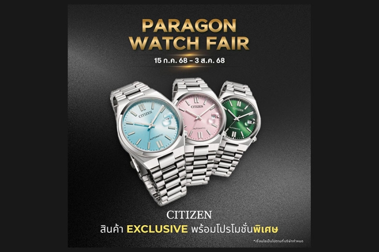 CITIZEN (ซิติเซน) แบรนด์นาฬิกาชั้นนำระดับโลก สัญชาติญี่ปุ่นที่รังสรรค์นาฬิกาอันเป็นเอกลักษณ์ที่โดดเด่น เรียบหรู สุดคลาสสิก และมีความแม่นยำสูง ด้วยฝีมือสุดประณีตและเป็นที่ยอมรับจากทั่วโลกยาวนานกว่า 100 ปี ได้ยกทัพนาฬิกาตัวท็อปของแบรนด์ พร้อมโปรโมชันสุดพิเศษมาไว้ในงาน Siam Paragon Watch & Jewelry Expo 2025 ภายใต้คอนเซปต์ “The Pinnacle of Timepiece” โดยมี CITIZEN TSUYOSA 37 mm นาฬิกาที่สุดแห่งความคลาสสิกเหนือกาลเวลา ที่มีขนาดกระทัดรัด ด้วยตัวเรือน 37 มม. มาพร้อมกับสีสันอันโดดเด่นด้วยสีชมพู Pastel Pink สีเขียว Dark Green รวมถึงสียอดฮิตอย่างสีฟ้า Ice Blue ในราคา 16,600 บาท และ CITIZEN Series 8 880 GMT คอลเลกชัน Series 8 รุ่นท็อปของแบรนด์ นาฬิกาทรงสปอร์ตดีไซน์หรู สายสเตนเลสสตีล ที่เข้ากับตัวเรือนสีทอง พร้อมกลไกอัตโนมัติฟังก์ชัน GMT ที่เต็มไปด้วยความประณีตทั้งงานประกอบและงานขัด ในราคา 75,500 บาท