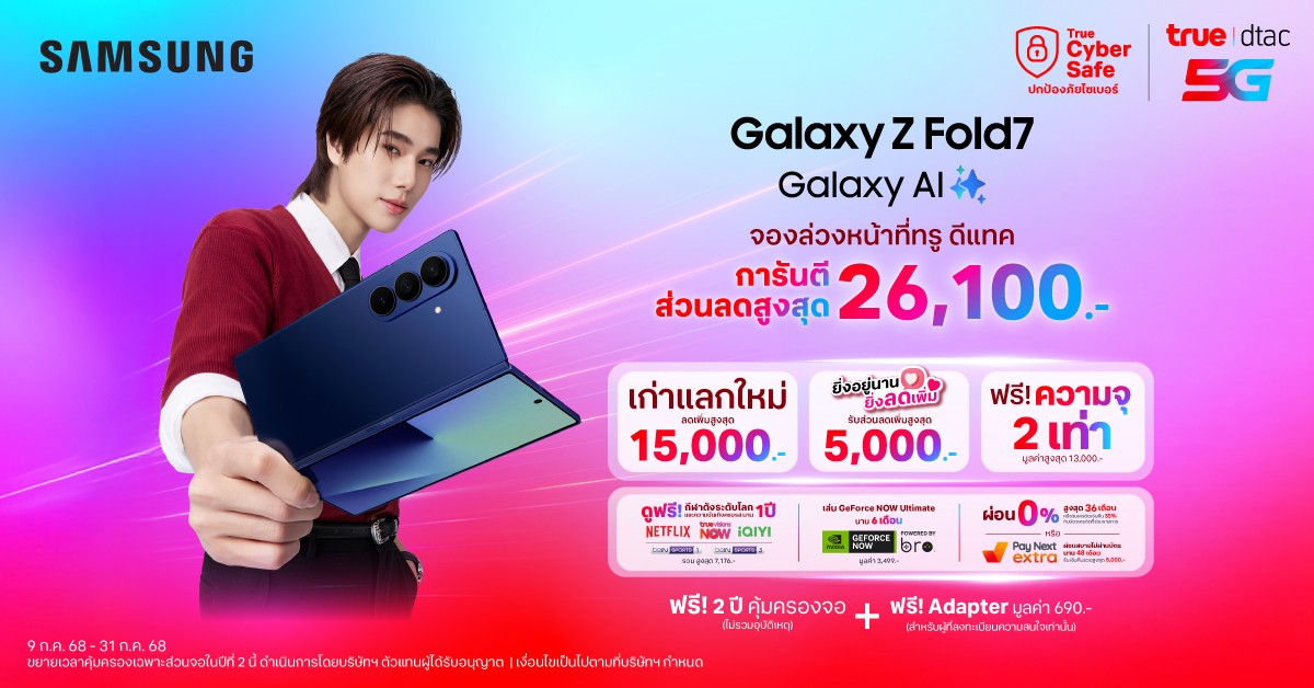 เหนือกว่าที่เคยพับ กับข้อเสนอที่คุ้มที่สุด…ทรู ดีแทค 5G เปิดจองล่วงหน้าให้เป็นเจ้าของ Samsung Galaxy Z Fold7 ดีไซน์ใหม่ เครื่อง ใหญ่แต่ “บาง” กว้าง แต่ “เบา” และ Galaxy Z Flip7 ที่มาพร้อม “จอหน้าแบบเต็มจอ” ก่อนใคร!!!
