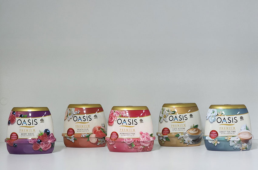 บริษัท เอิร์ธ (ประเทศไทย) จำกัด ผู้ผลิตและจัดจำหน่ายผลิตภัณฑ์คุณภาพเพื่อสุขอนามัยและชีวิตความเป็นอยู่ที่ดีของคนไทย ภายใต้แบรนด์ โอเอซิส เปิดตัวเจลน้ำหอมปรับอากาศ คอลเลกชั่นใหม่ “โอเอซิส พรีเมียม เนเชอรัล เจลน้ำหอมปรับอากาศ สูตรธรรมชาติ (OASIS PREMIUM NATURAL GEL AIR FRESHENER)” ด้วยความพิถีพิถันและตั้งใจ จนออกมาเป็นกลิ่นเอกลักษณ์เฉพาะตัวของแบรนด์ 5 กลิ่น ได้แก่ โรแมนซ์ พิงค์ (Romance Pink) กลิ่นหอมจากแพร์ เบอร์รี่ และกุหลาบ ผสมผสานกับวนิลาหอมละมุน สุดโรแมนติก, คาเฟ่ บลูม (Café Bloom) กลิ่นคอฟฟี่บาร์หอมกรุ่น ที่มีความยูนีกของเมล็ดกาแฟคั่วบด, พีช ซิลค์ (Peach Silk) กลิ่นหอมหวาน สดชื่น อ่อนโยน ของลูกพีชและดอกไม้, สวีท ที ไทม์ (Sweet Tea Time) กลิ่นหอมหวาน กลมกล่อม ตามสไตล์ชานมนุ่มละมุน และ เบอร์รี่ เวฟ (Berry Wave) กลิ่นหอมละมุน สดชื่น แบบหวานซ่อนเปรี้ยว
