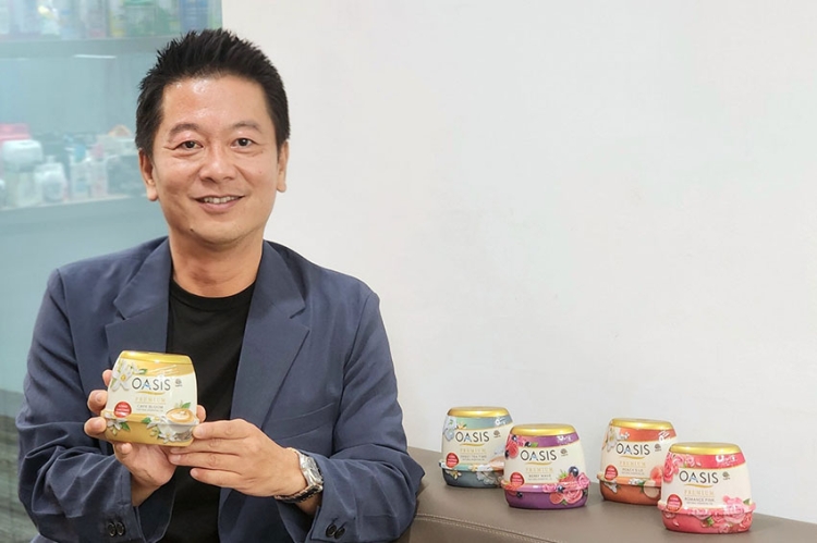 นายคุนิฮารุ ซาซากิ ผู้จัดการอาวุโส ฝ่ายการตลาดการค้า บริษัท เอิร์ธ (ประเทศไทย) จำกัด กล่าวถึงผลิตภัณฑ์ โอเอซิส พรีเมียม เนเชอรัล เจลน้ำหอมปรับอากาศ สูตรธรรมชาติ (OASIS PREMIUM NATURAL GEL AIR FRESHENER) ที่ปล่อยออกมาใหม่ทั้ง 5 กลิ่นนี้ว่า“เรามองเห็นถึงความสำคัญของบ้าน สถานที่ที่เราต้องอยู่ในทุกๆวัน เพราะบ้านที่ดีนั้น นอกจากจะสวยและสะอาดแล้วนั้น เรื่องกลิ่นก็ถือว่าเป็นสิ่งที่สำคัญ หากมีกลิ่นไม่พึงประสงค์ ก็อาจทำให้ความน่าอยู่ลดลง หากมีเจลน้ำหอมปรับอากาศอย่าง โอเอซิส พรีเมียม เนเชอรัล เจลน้ำหอมปรับอากาศสูตรธรรมชาติ ที่ผลิตจากน้ำมันหอมระเหยจากธรรมชาติ ปลอดภัย ไร้สารเคมี เป็นมิตรกับสัตว์เลี้ยง แถมยังกระจายกลิ่นหอมเข้มข้นอย่างสม่ำเสมอ ติดทนนาน ด้วยนวัตกรรมเทคโนโลยีอิมัลซิไฟ (Emulsified) จากญี่ปุ่น พร้อมยกระดับให้บ้านของคุณดูดีขึ้นด้วยดีไซน์หรูหรา สวยทันสมัย เหมาะกับทุกมุมของบ้าน ทั้งห้องนั่งเล่น ห้องนอน หรือห้องน้ำ เสริมบรรยากาศให้ดูดี มีสไตล์”