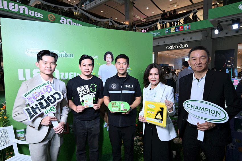 นอกจากนวัตกรรมผลิตภัณฑ์แล้วถุงขยะแชมเปี้ยนยังให้ความสำคัญกับพันธกิจด้านสิ่งแวดล้อมอย่างต่อเนื่อง โดยแบรนด์ได้รณรงค์และทำแคมเปญเกี่ยวกับการ แยกขยะ = ลดขยะ มาอย่างต่อเนื่องเป็นปีที่ 6 พร้อมร่วมเป็นภาคีเครือข่ายมือวิเศษกรุงเทพ และสนับสนุนโครงการ “บ้านนี้ไม่เทรวม” ของกรุงเทพมหานคร ซึ่งเป็นไปตามค่านิยมของคนรุ่นใหม่ที่เห็นคุณค่าของความยั่งยืน โดยในงานเปิดตัวพรีเซนเตอร์ครั้งนี้ ยังมีการจัดช่วงเสวนา "แชมเปี้ยนทอล์ค บ้านนี้ไม่เทรวม จุดเปลี่ยนการแยกขยะกรุงเทพ" โดยได้รับเกียรติจาก นายพรพรหม วิกิตเศรษฐ์ ที่ปรึกษาของผู้ว่าราชการกรุงเทพมหานคร ผู้ขับเคลื่อนนโยบายด้านความยั่งยืน พร้อมด้วย นายเมธา เสนทอง ผู้ประสานงานภาคีมือวิเศษกรุงเทพ และนายกฤทธิ์ ดนุเดชสกุล ผู้จัดการฝ่ายพัฒนาธุรกิจ มาร่วมพูดคุยเพื่อให้ข้อมูลและทำความเข้าใจเกี่ยวกับนโยบาย "บ้านนี้ไม่เทรวม: แยกขยะลดค่าธรรมเนียม" รวมถึงการประชาสัมพันธ์ Application BKK WASTE PAY ให้กับคนรุ่นใหม่ที่มาร่วมงานได้รับฟังอีกด้วย
