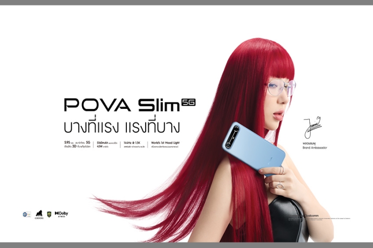 ในฐานะนวัตกรรมดีไซน์บางเฉียบล่าสุดของซีรีส์ POVA สำหรับผู้ใช้เจเนอเรชันใหม่ POVA Slim 5G มอบสไตล์ล้ำอนาคต ความทนทานที่พร้อมใช้งานจริง พร้อมการอัปเกรดด้านแบตเตอรี่และประสิทธิภาพอย่างมีนัยสำคัญในสมาร์ตโฟนเพียงเครื่องเดียว โดยจะวางจำหน่ายใน 3 สีโดดเด่น ได้แก่ Sky Blue, Slim White และ Cool Black