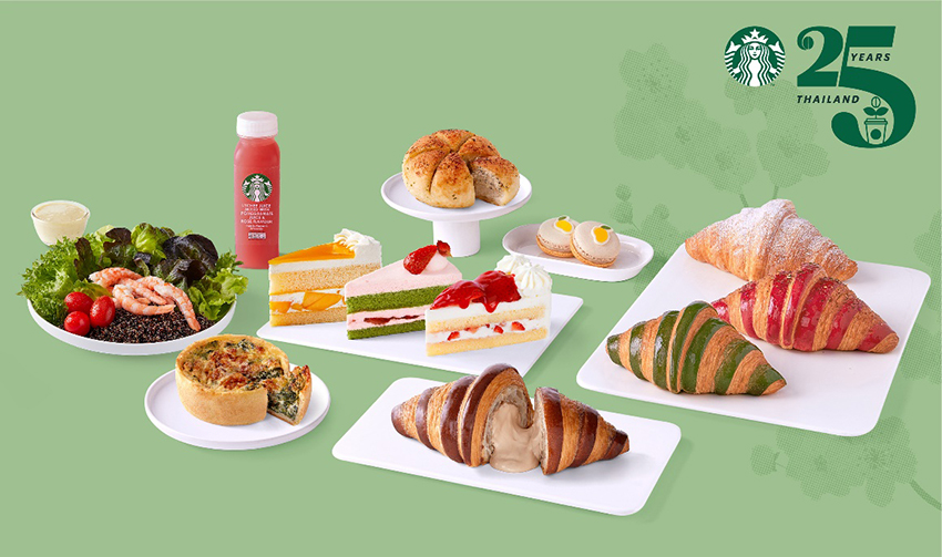 สตาร์บัคส์ ส่งขนมเมนูใหม่ พร้อมเสิร์ฟให้กับคนรักครัวซองท์อย่าง ครัวซองท์ชาเขียว (Green Tea Croissant) ครัวซองท์แป้งบางกรอบสีเขียวของชาเขียว สลับกับชั้นเนยนำเข้าจากประเทศเบลเยี่ยม สอดไส้ด้วยครีมชาเขียว ให้สัมผัสเนียนนุ่ม เข้มข้น หอมละมุนด้วยกลิ่นชาเขียว ครัวซองท์กาแฟคาปูชิโน่ (Cappuccino Croissant) ครัวซองท์แป้งบางกรอบสีน้ำตาล สอดไส้ด้วยครีมกาแฟ เข้มข้นด้วยนม หอมกลิ่นกาแฟอ่อนๆ และยังมีการกลับมาของ ครัวซองท์มิกซ์เบอร์รี (Mixed Berry Croissant) ที่หลายๆคนรอคอย เติมความหวานอมเปรี้ยวด้วยไส้มิกซ์เบอร์รี ที่มาจากการผสมผสานของแยมราสเบอร์รีและสตรอเบอร์รี่ และ ครัวซองท์ไส้ครีมนมสด (Milky Cream Croissant) สอดไส้ครีมนมสด เนื้อเนียนนุ่ม ละลายในปาก โดยครัวซองท์ทั้ง 4 ชนิดสามารถทานคู่กับไอศครีมวานิลลารสกลมกล่อม ในสาขาที่จำหน่ายเมนูไอศครีมอีกด้วย นอกจากนี้ เรายังมีขนมอบสดใหม่ (เฉพาะร้าน Bake-in Food) ที่เป็นเมนูใหม่อย่าง เมเปิ้ล พีแคน เดนิช (Maple Pecan Danish) แป้งเดนิชสอดไส้น้ำเชื่อมเมเปิ้ล หวานฉ่ำละมุน เพิ่มความกรุบกรอบด้วยถั่วพีแคน พัฟฟ์ แอปเปิ้ล (Apple Turnover) แป้งพัฟฟ์ เรียงตัวเป็นชั้นสอดไส้ด้านในด้วยแอปเปิ้ล รสเปรี้ยวอมหวาน และทาร์ตอัลมอนด์ (Almond Tart) แป้งทาร์ตอัลมอนด์สไตล์คลาสสิค โรยด้วยอัลมอนด์ด้านบน หอมกลิ่นน้ำตาลคาราเมลอ่อนๆ ที่ทานคู่กับเครื่องดื่มรสกลมกล่อมแก้วโปรดได้อย่างลงตัว