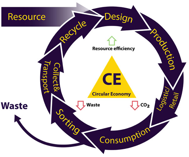 ทั้งนี้ แนวทางสำคัญที่จะช่วยขับเคลื่อนให้เกิดวัฏจักรของการบริหารจัดการพลาสติกใช้แล้วที่ยั่งยืนได้อย่างแท้จริงตามหลักเศรษฐกิจหมุนเวียน (Circular Economy: CE) ที่มุ่งเน้นการหมุนเวียนทรัพยากรธรรมชาติตลอดห่วงโซ่คุณค่า (Value chain) ด้วยการคัดแยกและนำพลาสติกหลังการใช้งานกลับเข้าสู่ระบบเพื่อการรีไซเคิลกลับมาใช้เป็นทรัพยากรในกระบวนการผลิตใหม่เพื่อให้เกิดการใช้ทรัพยากรอย่างมีประสิทธิภาพ (Resource efficiency) และลดการปล่อยของเสีย (Waste) และก๊าซเรือนกระจกออกสู่สิ่งแวดล้อม
