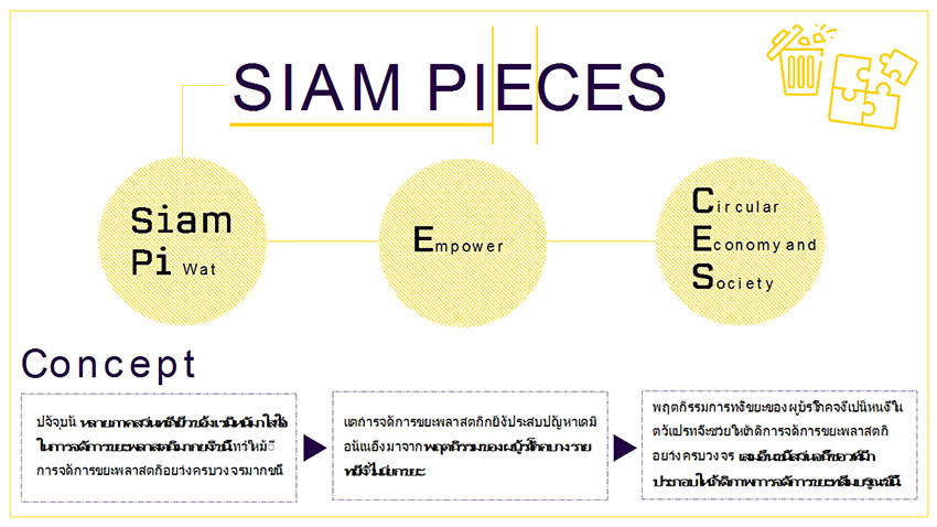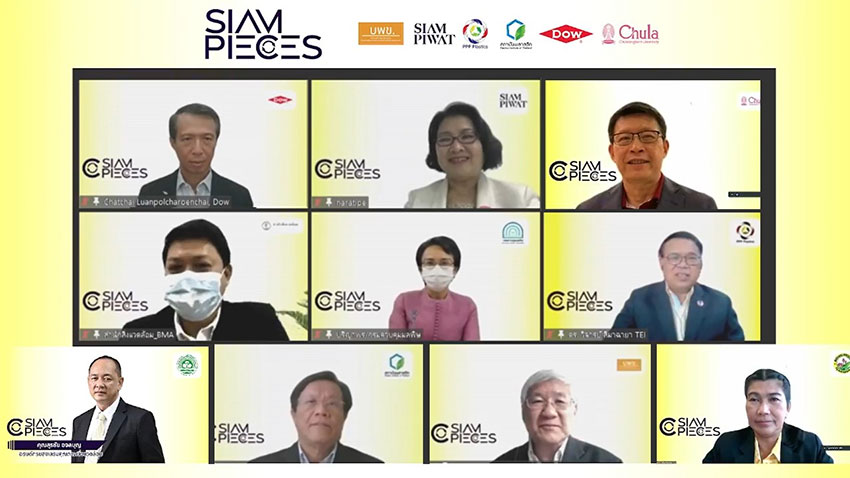 โดยกิจกรรมแรกที่ดำเนินการภายใต้โครงการ SIAM PIECES คือ การแถลงข่าวเพื่อเปิดตัวโครงการ (Project Launch) ในรูปแบบออนไลน์ผ่านระบบ ZOOM และ Facebook Live รวมถึงมีการจัดเสวนาหัวข้อ “Siam Pieces โมเดลเส้นทางการจัดการพลาสติกใช้แล้วครบวงจร” ซึ่งได้รับเกียรติจากผู้บริหารของหน่วยงานเครือข่ายหลายภาคส่วน ทั้ง (1) ภาคสังคม/สื่อต่าง ๆ (2) ภาคเอกชน เช่น บริษัท สยามพิวรรธน์ จำกัด กลุ่มบริษัท ดาว ประเทศไทย สถาบันพลาสติก โครงการ PPP Plastics (3) ภาควิชาการ เช่น บพข. (หน่วยบริหารและจัดการทุนด้านการเพิ่มความสามารถในการแข่งขันของประเทศ) จุฬาลงกรณ์มหาวิทยาลัย และ (4) ภาครัฐ เช่น เขตปทุมวัน สำนักสิ่งแวดล้อมกรุงเทพมหานคร กรมควบคุมมลพิษ รวมถึงกรมส่งเสริมคุณภาพสิ่งแวดล้อม กระทรวงทรัพยากรธรรมชาติและสิ่งแวดล้อม ที่เข้ามามีส่วนร่วมในการส่งเสริมให้เกิดการร่วมงานในลักษณะภาคีความร่วมมือกับหน่วยงานต่าง ๆ ซึ่งสอดคล้องกับพันธกิจของหน่วยงานในการส่งเสริมและประชาสัมพันธ์ด้านสิ่งแวดล้อม ประกอบกับการส่งเสริมการมีส่วนร่วมของประชาชนในการใช้ประโยชน์จากทรัพยากรสิ่งแวดล้อมอย่างสมดุลและยั่งยืน