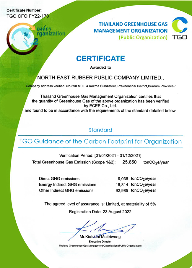 นายชูวิทย์ จึงธนสมบูรณ์ ประธานเจ้าหน้าที่บริหาร บริษัท นอร์ทอีส รับเบอร์ จำกัด (มหาชน) หรือ NER กล่าวถึงเจตนารมณ์การขับเคลื่อนองค์กรสู่การดำเนินธุรกิจอย่างยั่งยืน โดยบริษัทฯ ตั้งเป้าหมายระยะยาว ในความเป็นกลางทางคาร์บอน (Carbon Neutrality) ภายในปี 2040 โดยมีกลยุทธ์ แผนงานในการสนับสนุน และ ให้ความสำคัญในด้านการจัดการก๊าซเรือนกระจกตลอดห่วงโซ่คุณค่า อาทิ การปรับปรุงและพัฒนาประสิทธิภาพของกระบวนการผลิต ส่งเสริมการใช้พลังงานสะอาดในกระบวนการผลิตและครอบคลุมภายในโรงงาน ตลอดจนความมุ่งมั่นในการลดการเกิดของเสียตลอดทั้งห่วงโซ่อุปทาน ด้วยการบริหารจัดการทรัพยากรให้เกิดประโยชน์สูงสุด เพื่อเป้าหมายในการผลักดันสู่การเป็นองค์กรธุรกิจคาร์บอนต่ำและยั่งยืน