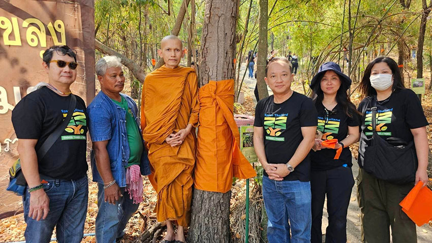 ต่อจาก ‘เรื่องจริงของคนตีไฟ’ คือ ‘พิธีบวชป่าลับแล’ ที่คณะพนักงานและสื่อมวลชนร่วมเป็นเจ้าภาพพิธีบวชป่าครั้งแรกของป่าชุมชนเขาขลุง อำเภอบ้านโป่ง จังหวัดราชบุรี ทั้งยังได้ปลูกต้นสักเพิ่มให้กับเขาลูกนี้ด้วย และได้รับความร่วมมือเป็นอย่างดีจากผู้ใหญ่และชาวหมู่บ้านสระสี่มุม