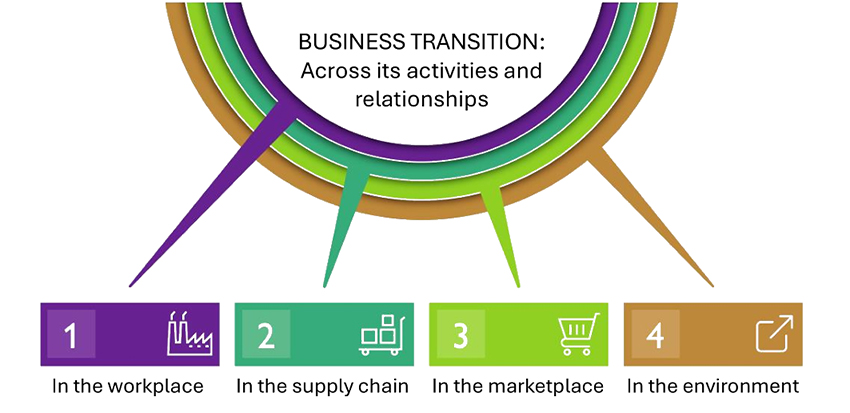ดร.พิพัฒน์ ยอดพฤติการ ประธานสถาบันไทยพัฒน์ กล่าวว่า “บทบาทของ Transition School ครอบคลุมการให้ความรู้สำหรับการเปลี่ยนผ่านทางธุรกิจตั้งแต่ระดับที่เป็นความสัมพันธ์กับผู้มีส่วนได้เสีย จนถึงกิจกรรมที่ก่อให้เกิดผลกระทบเชิงบวกทั้งในสถานประกอบการ (In the workplace) ในสายอุปทาน (In the supply chain) ในท้องตลาด (In the marketplace) และในสภาวะแวดล้อมที่ดำเนินภายนอก (In the external operating environment)”