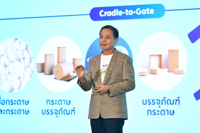SCGP ยังเล็งเห็นว่า การผลิตบรรจุภัณฑ์ของบริษัทถือเป็น Scope 3 ของลูกค้าซึ่งเกี่ยวข้องกับการปล่อยก๊าซเรือนกระจก จึงได้ทุ่มเทความพยายามและร่วมมือกับองค์การบริหารจัดการก๊าซเรือนกระจก (องค์การมหาชน) หรือ TGO ในการพัฒนาแนวทางและวิธีการ เพื่อขอรับรองคาร์บอนฟุตพริ้นท์ของผลิตภัณฑ์ (CFP) โดยมีเป้าหมายเพื่อเสริมศักยภาพการลดการปล่อยก๊าซเรือนกระจกให้กับลูกค้า ทำให้ล่าสุด SCGP ได้รับการรับรองคาร์บอนฟุตพริ้นท์ของผลิตภัณฑ์ (CFP) จากองค์การบริหารจัดการก๊าซเรือนกระจก (องค์การมหาชน) หรือ TGO เป็นผลสำเร็จ ครอบคลุมผลิตภัณฑ์ที่ผลิตในประเทศ ได้แก่ กลุ่มสินค้าเยื่อกระดาษ กระดาษพิมพ์เขียน กระดาษถ่ายเอกสาร กระดาษบรรจุภัณฑ์ บรรจุภัณฑ์อาหาร บรรจุภัณฑ์พลาสติก จำนวน 128 ผลิตภัณฑ์ อีกทั้งยังได้รับการรับรองคาร์บอนฟุตพริ้นท์จากกระบวนการพิมพ์และการขึ้นรูปบรรจุภัณฑ์กระดาษรวม 16 กระบวนการ ครอบคลุมทุกกลุ่มสินค้าบรรจุภัณฑ์กระดาษ