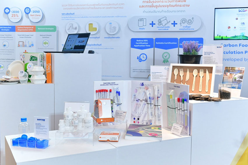 SCGP เสริมธุรกิจด้วยกลยุทธ์ ESG เพื่อขับเคลื่อนองค์กรเติบโตอย่างยั่งยืนให้พร้อมรับการเปลี่ยนแปลงที่สำคัญของโลก (Megatrends) ชูการรับรองคาร์บอนฟุตพรินท์ของผลิตภัณฑ์ (CFP) การพัฒนา Private declaration Label เพื่อระบุปริมาณ CFP บนผลิตภัณฑ์ พร้อม “ซอฟต์แวร์คาร์บอนฟุตพริ้นท์” ช่วยคำนวณปริมาณปล่อยคาร์บอนไดออกไซด์ได้อย่างรวดเร็ว เสริมศักยภาพการดำเนินธุรกิจ ช่วยจัดการปล่อยก๊าซเรือนกระจกใน Scope 3 ของลูกค้า เพิ่มโอกาสธุรกิจและเสริมศักยภาพอุตสาหกรรมบรรจุภัณฑ์ไทย ตั้งเป้าขอการรับรอง CFP ในกลุ่มสินค้าที่ผลิตในประเทศไทย 100% ภายในปี 2027