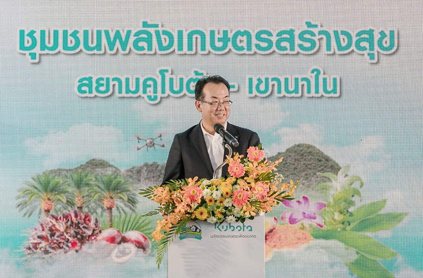 นายจูนจิ โอตะ กรรมการผู้จัดการใหญ่ บริษัทสยามคูโบต้าคอร์ปอเรชั่น จำกัด กล่าวถึงการเข้าไปสนับสนุนกลุ่มวิสาหกิจชุมชนสู่การเป็น ศูนย์เรียนรู้ชุมชนพลังเกษตรสร้างสุขสยามคูโบต้า-เขานาใน ครั้งนี้ว่า “นับเป็นความภาคภูมิใจครั้งยิ่งใหญ่ที่สยามคูโบต้าได้มีโอกาสเข้าไปร่วมมือและสนับสนุนองค์ความรู้ให้แก่ วิสาหกิจชุมชนบ้านเขานาใน ตำบลต้นยวน อำเภอพนม จังหวัดสุราษฎร์ธานี ซึ่งนับเป็นศูนย์เรียนรู้ชุมชนพลังเกษตรสร้างสุขสยามคูโบต้าลำดับที่ 6 และเป็นศูนย์เรียนรู้ฯ แห่งแรกของภาคใต้ ด้วยการส่งเสริมการเพาะปลูกด้วยระบบ KUBOTA (Agri) Solutions หรือ KAS นวัตกรรมเกษตรครบวงจร เพื่อเพิ่มปริมาณและคุณภาพผลผลิต โดยชูจุดเด่นด้านความเชี่ยวชาญในการปลูกขมิ้นชัน และการเป็น Womenomics หรือพลังขับเคลื่อนเศรษฐกิจชุมชนด้วยบทบาทกลุ่มเกษตรกรหญิงแกร่งแห่งวิสาหกิจชุมชนบ้านเขานาในที่มีศักยภาพความมุ่งมั่นบวกกับความพร้อมและความตั้งใจ