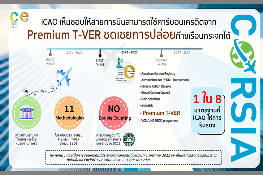 - ICAO รับรอง Premium T-VER ใช้ชดเชยการปล่อยก๊าซเรือนกระจก จากสายการบินที่ให้บริการเที่ยวบินระหว่างประเทศภายใต้ CORSIA