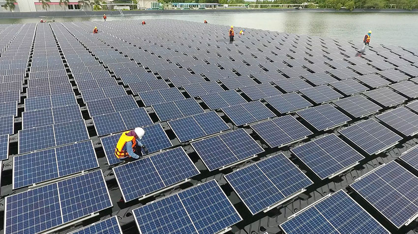 นอกจากนี้ การเปลี่ยนวิถีการใช้พลังงานของมนุษย์จากการเผาผลาญเชื้อเพลิงแบบเดิมมาเป็นพลังงานสะอาด เป็นอีกหนึ่งแนวทางที่ช่วยแก้วิกฤตสภาพอากาศได้ ซึ่ง SCG ส่งเสริมการใช้พลังงานแสงอาทิตย์ โดยพัฒนาเป็นนวัตกรรมโซลูชันที่ครอบคลุมในทุกมิติ แม้แต่บนผืนน้ำก็สามารถติดตั้งแผงโซลาร์เซลล์ได้ เมื่อกลุ่มธุรกิจเคมิคอลส์ซึ่งมีความเชี่ยวชาญด้านนวัตกรรมพลาสติกได้พัฒนา SCG Floating Solar Solutions ทุ่นลอยน้ำและระบบยึดโยงสำหรับติดตั้งแผงโซลาร์เซลล์ขึ้นเป็นรายแรกของประเทศไทย เพื่อแปลงพลังงานแสงอาทิตย์เป็นพลังงานไฟฟ้าที่นำไปใช้ประโยชน์กับธุรกิจทั้งภาคอุตสาหรกรรมและภาคการเกษตรได้ ซึ่งช่วยลดต้นทุน บริหารจัดการพื้นที่ผิวน้ำอย่างมีประสิทธิภาพและสร้างโอกาสทางธุรกิจด้านพลังงานสะอาด