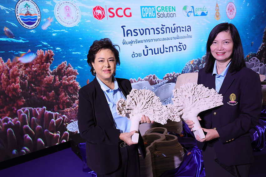 “เอสซีจี” โดย บริษัทผลิตภัณฑ์และวัตถุก่อสร้าง จำกัด ร่วมกับ กรมทรัพยากรทางทะเลและชายฝั่ง กระทรวงทรัพยากรธรรมชาติและสิ่งแวดล้อม คณะสัตวแพทยศาสตร์ จุฬาลงกรณ์มหาวิทยาลัย และมูลนิธิ Earth Agenda พร้อมภาคีสนับสนุน กองทัพเรือ มหาวิทยาลัยเทคโนโลยีพระจอมเกล้าพระนครเหนือ เปิดตัวโครงการ “รักษ์ทะเล” รวมพลังฟื้นฟูทรัพยากรทางทะเลด้วยบ้านปะการัง นำเทคโนโลยีการพิมพ์แบบ 3 มิติ จาก CPAC 3D Printing Solution ขึ้นรูปเป็นวัสดุฐานลงเกาะตัวอ่อนปะการัง สร้างต้นแบบนำร่องการฟื้นฟูทรัพยากรทางทะเลและชายฝั่งของประเทศ ที่มีรูปแบบใกล้เคียงธรรมชาติ พร้อมนำองค์ความรู้ ความเชี่ยวชาญจากพันธมิตร คืนกลับความอุดมสมบูรณ์ให้กับระบบนิเวศแนวปะการัง โดยเปิดรับสนับสนุนผ่านการระดมทุนผ่านมูลนิธิ Earth Agenda