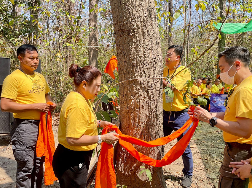 เพื่อเป็นการร่วมอนุรักษ์ผืนป่าและสิ่งแวดล้อม ผู้เข้าร่วมโครงการฯ ได้ร่วมกันทำกิจกรรมบวชป่า และกิจกรรมปลูกป่า ณ ป่าชุมชนบ้านสาแพะ เพื่อเป็นกุศโลบายห้ามไม่ให้คนมาตัดไม้ทำลายป่า และเพื่อคงความอุดมสมบูรณ์ของป่าธรรมชาติไว้ อีกทั้งยังช่วยให้แหล่งน้ำไม่เหือดแห้ง และที่สำคัญคือ เป็นการสร้างสำนึกให้แก่ชุมชนในการมีส่วนร่วมดูแลสภาพสิ่งแวดล้อม และยังได้เรียนรู้แนวคิดเรื่องการบริหารจัดการทรัพยากรน้ำรูปแบบต่าง ๆ ตามแนวพระราชดำริในพื้นที่บ้านสาแพะใต้อีกด้วย เช่น “สระพวง” หนึ่งในตัวช่วยสำคัญสำหรับการบริหารจัดการน้ำบนพื้นที่สูง ที่ช่วยในเรื่องการกักเก็บน้ำไว้ใช้ในยามแห้งแล้ง โดยมีกระบวนการเริ่มจากการขุดสระแม่ หรือสระขนาดใหญ่บนพื้นที่สูงสำหรับกักเก็บน้ำ จากนั้นเชื่อมต่อการส่งน้ำลงมายังสระลูกสระหลานในพื้นที่ที่ต่ำกว่า เพื่อใช้สำหรับทำการเกษตร