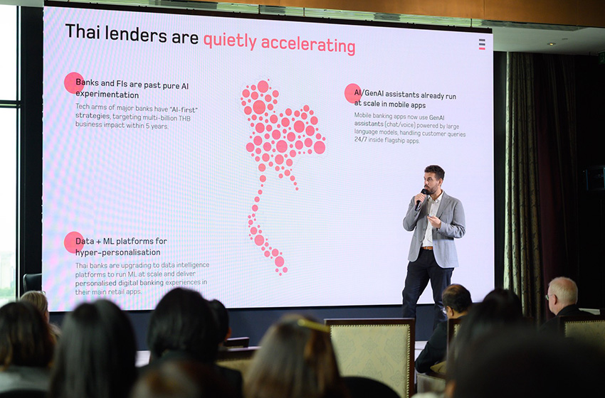 Mr. Dimitris ระบุว่า สถาบันการเงินไทยหลายแห่งได้เริ่มเดินหน้า AI-first Roadmap แล้ว ทั้งการนำ GenAI มาใช้ตอบคำถามลูกค้า การพัฒนาแพลตฟอร์มข้อมูลและโมเดล Machine Learning รวมถึงการออกแบบระบบตัดสินใจแบบเรียลไทม์เพื่อให้สอดคล้องกับพฤติกรรมลูกค้าที่เปลี่ยนไป