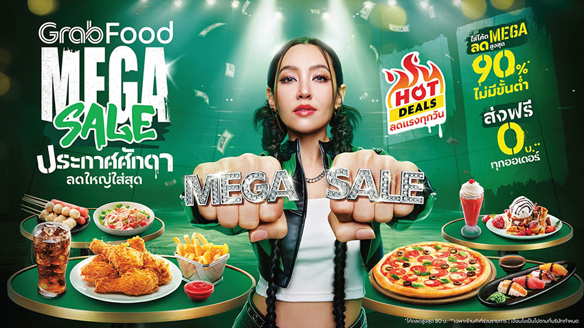 แกร็บฟู้ด ตอกย้ำผู้นำแพลตฟอร์มเดลิเวอรียอดนิยม เขย่าตลาดด้วยแคมเปญใหญ่ส่งท้ายปี “GrabFood Mega Sale ประกาศศักดา ลดใหญ่ใส่สุด” ผนึกพันธมิตรร้านอาหารทั่วประเทศหั่นราคา-แจกโค้ดส่วนลดสูงสุดเป็นประวัติการณ์ถึง 90% ทุกชั่วโมงแบบไม่มีขั้นต่ำ พร้อมส่งดีลสั่งอาหารราคาพิเศษเริ่มต้น 19 บาทกว่า 16,000 ดีล มาพร้อมโปรโมชันพิเศษส่งฟรี 0 บาท จัดเต็มด้วยกิจกรรมการตลาด 360 องศา โดยเพิ่มสัดส่วนของสื่อออฟไลน์ถึงสองเท่า โดยเฉพาะสื่อกลางแจ้ง (Out-of-Home) และ สื่อโฆษณาเคลื่อนที่ (Transit Media) เพื่อสร้างการรับรู้ในวงกว้างและตอกย้ำเรื่องความคุ้มค่าและปลุกกำลังซื้อในช่วงที่ผู้บริโภคเริ่มรัดเข็มขัดจากสถานการณ์เศรษฐกิจ เสริมทัพด้วยกลยุทธ์ Music Marketing ปรับลุคพรีเซนเตอร์ “เบลล่า ราณี” เป็นแรปเปอร์สาวในแคมเปญโฆษณาล่าสุด ชวนสั่งอาหารเป็นกลุ่มต้อนรับช่วงเทศกาลปลายปีที่คนนิยมสั่งอาหารมาเลี้ยงฉลองร่วมกัน หลังยอดใช้บริการฟีเจอร์ Group Order (สั่งอาหารแบบกลุ่ม) เติบโตขึ้นกว่า 90%