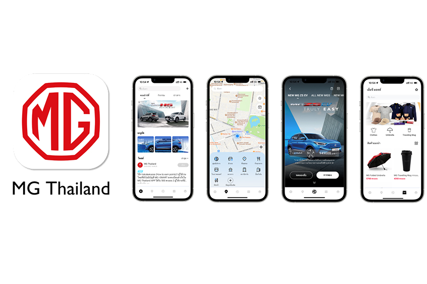 MG Thailand แอพพลิเคชั่นที่เปิดกว้างสำหรับผู้ที่สนใจรถยนต์เอ็มจีสามารถดาวน์โหลดและติดตาม ความเคลื่อนไหวได้ตลอดเวลา โดยมีฟังก์ชั่นหลักๆ ได้แก่ “ข้อมูลข่าวสารทั่วไป” (FEED) ซึ่งเป็นการรวบรวมข้อมูลข่าวสารความเคลื่อนไหวและกิจกรรมของบริษัทฯ รวมไปถึงยังเป็นช่องทางที่ให้ผู้ใช้งานสามารถแสดงความคิดเห็นและแลกเปลี่ยนประสบการณ์การใช้รถยนต์ สอดรับกับไลฟ์สไตล์ของผู้บริโภคยุคใหม่มากขึ้น ฟังก์ชั่น “ข้อมูลผลิตภัณฑ์” (PRODUCT EXPLORE) ที่รวบรวมข้อมูลรถยนต์เอ็มจีทุกรุ่น สามารถค้นหาโชว์รูม นัดหมายทดลองขับได้ง่ายขึ้น และเตรียมเพิ่มฟังก์ชั่นจองรถในเร็วๆ นี้ สำหรับลูกค้าที่เป็นเจ้าของรถยนต์เอ็มจีที่ต้องใช้งานระบบปฏิบัติการอัจฉริยะ i-SMART ก็สามารถสั่งการ ควบคุม และตรวจสอบสถานะของรถผ่านแอพพลิเคชั่นได้ แบบเรียลไทม์ นอกจากนี้ยังมีฟังก์ชั่นที่ช่วยให้การชาร์จของรถยนต์พลังงานไฟฟ้าสะดวกสบายมากขึ้น รวมถึงบริการหลังการขาย Passion Service ฟังก์ชั่น “แผนที่” (NAVIGATION) สามารถค้นหาสถานที่ สถานีอัดประจุไฟฟ้าของผู้ให้บริการหลักๆ ในประเทศไทย อีกทั้งยังสามารถจองคิวสถานี MG Super Charge ได้ด้วย รวมไปถึง “ข้อมูลส่วนบุคคล” (MY PROFILE) ที่รวบรวมข้อมูล รายการโปรด การตั้งค่าแจ้งเตือนต่างๆ และยังมีฟังก์ชั่น “เอ็มจี มอลล์” (MG MALL) ให้ผู้ใช้งานร่วมกิจกรรมและสะสมแต้มเพื่อแลกซื้อสินค้าหลากหลายรายการ