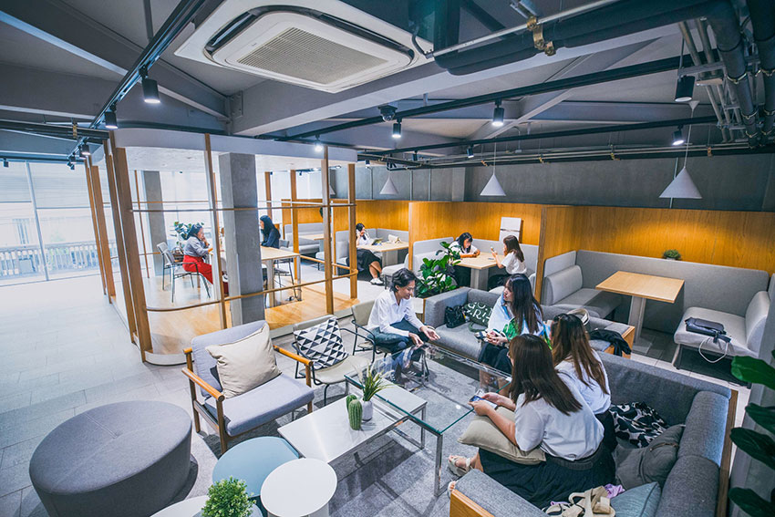 “แต่ละสาขาเราจัดพื้นที่และสิ่งอำนวยความสะดวกไว้ครบ ทั้งที่นั่งทำงานแบบ Hot Desk ห้องประชุม และพื้นที่จัด Event ซึ่งมีการปรับเปลี่ยนรูปแบบได้ นอกจากนี้เราเองยังมีการจัดกิจกรรมต่างๆ เป็นเวิร์กชอปพัฒนาทักษะเสริมทั้งด้านความรู้และประสบการณ์ที่น้องๆ นักศึกษาสามารถนำไปใช้ในอนาคต การมีกิจกรรมเหล่านี้ก็เป็นการสร้างคอมมูนิตี้ของเราให้เกิดขึ้นด้วย และเชื่อว่าเมื่อก้าวสู่วัยทำงาน พวกเขาก็จะยังเข้ามาใช้บริการของเราเช่นกัน” นวลพรรณ อธิบาย