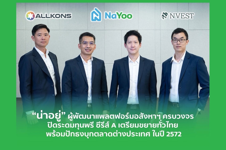 “น่าอยู่” สตาร์ทอัพแพลตฟอร์มมาร์เก็ตเพลสด้านอสังหาริมทรัพย์สัญชาติไทย (www.NaYoo.co) ผู้ให้บริการซื้อ-ขาย, เช่า, แบบบ้าน-รับสร้างบ้าน ครบจบในที่เดียว ประกาศความสำเร็จระดมทุนรอบพรี ซีรีส์ A มูลค่ามากกว่า 40 ล้านบาท ผ่านความร่วมมือกับสองพันธมิตรยักษ์ใหญ่ NVEST Venture กองทุนภายใต้ธนาคารออมสินและตลาดหลักทรัพย์แห่งประเทศไทย และบริษัท ออลคอนวัน จำกัด (Allkons One) แพลตฟอร์มซื้อ-ขายวัสดุก่อสร้าง และบริหารจัดการออนไลน์ครบวงจร เร่งเสริมแกร่งธุรกิจสู่การให้บริการโซลูชันแบบครบวงจร มุ่งพัฒนาวงการอสังหาฯ และก่อสร้างไทย ตอบโจทย์ไลฟ์สไตล์ลูกค้าตลาดออนไลน์โตต่อเนื่อง ตั้งเป้าปี 2570 ให้บริการทั่วไทย พร้อมปักธงปี 2572 ลุยตลาดต่างประเทศ