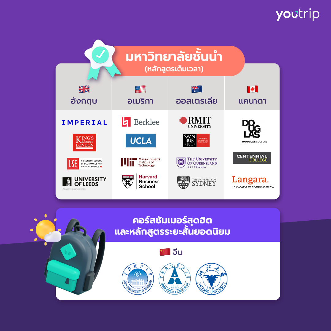 ในการเติบโตของยอดการชำระค่าเล่าเรียนผ่าน YouTrip เพิ่มขึ้นอย่างก้าวกระโดดถึง 70% เมื่อเทียบกับปีก่อน สิ่งนี้สะท้อนถึงบทบาทของ YouTrip ในฐานะ “ผู้นำด้านการชำระเงินระหว่างประเทศ” ที่ครอบครัวและนักเรียนต่างวางใจ ยิ่งในช่วงเวลาที่เศรษฐกิจมีความผันผวน การชำระค่าเล่าเรียนสถาบันการศึกษาชั้นนำใน สหราชอาณาจักร สหรัฐอเมริกา จีน และประเทศต่างๆ ทั่วโลก YouTrip ตอบโจทย์ในการใช้จ่ายเป็นสกุลเงินต่างประเทศด้วยเรทที่ดี ไม่มีค่าธรรมเนียม 2.5% ต่างจากบัตรเครดิต จึงกลายเป็นผลิตภัณฑ์หลักที่นักเรียนไทยเลือกใช้เวลาไปศึกษาต่อต่างประเทศ จากสถิติของ YouTrip ในสหราชอาณาจักร (UK) นักเรียนไทย 54% ที่ศึกษาอยู่ที่นั่นใช้ YouTrip เป็นช่องทางการชำระเงินหลักสำหรับค่าเล่าเรียนและค่าใช้จ่ายประจำวัน สถาบันชั้นนำที่นักเรียนไทยนิยม ได้แก่ Imperial College London, King’s College London, London School of Economics และ Leeds University นอกจาก UK แล้ว นักเรียนไทยยังคงเลือกศึกษาต่อในหลักสูตรเต็มเวลา (ระดับปริญญาตรี โท และเอก) ในสหรัฐอเมริกา (US) ออสเตรเลีย และแคนาดา โดยมีนักเรียนไทยเข้าศึกษาต่อในสถาบันที่มีชื่อเสียงต่างๆ เช่น