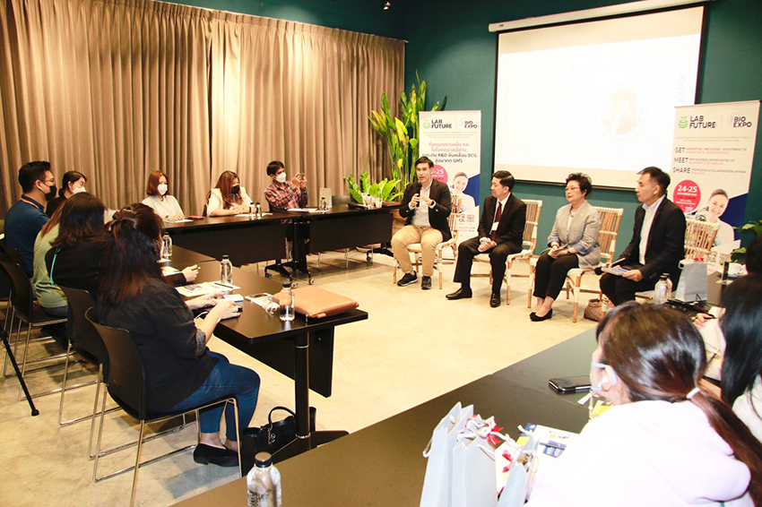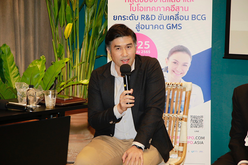 คุณกวิน ว่องกุศลกิจ กรรมการขอนแก่นอินโนเวชั่นเซ็นเตอร์ เปิดเผยว่า โครงการขอนแก่นอินโนเวชั่นเซ็นเตอร์ ได้ให้ความสำคัญต่อการขับเคลื่อนเทคโนโลยีและนวัตกรรมในพื้นที่ โดยบริษัท มิตรผล ได้ริเริ่มโครงการดังกล่าวและตนได้มีโอกาสมาช่วยพัฒนาต่อยอด เพื่อให้สอดรับกับแผนพัฒนาเศรษฐกิจและสังคมแห่งชาติเรื่องเศรษฐกิจฐานชีวภาพ เศรษฐกิจหมุนเวียน และเศรษฐกิจสีเขียว (BCG Model) ซึ่งภาคอีสานมีศักยภาพในการพัฒนาด้านเทคโนโลยีชีวภาพ ไม่ว่าจะเป็นอุตสาหกรรมอาหาร ยา เครื่องสำอาง ฯลฯ ดังนั้น ขอนแก่นอินโนเวชั่นเซ็นเตอร์ จึงเห็นว่า งาน LAB Future & BIO Expo 2022 จะมีส่วนสร้างเครือข่ายและระบบนิเวศทางนวัตกรรมและการค้นคว้าวิจัย ให้เกิดกับภูมิภาคอีสานและลุ่มน้ำโขงได้อีกทางหนึ่ง