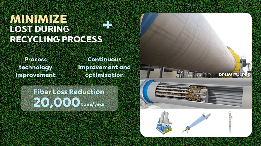 SCGP ได้ลงทุนทำให้กระดาษรีไซเคิลมีประสิทธิภาพสูงขึ้น ด้วยการลงทุนติดตั้งเทคโนโลยีจากต่างประเทศ และการเพิ่มประสิทธิภาพในการผลิต (Operational Excellence) มีการติดตั้งจุดตรวจวัดประสิทธิภาพในทุกกระบวนการ ทำให้ผลลัพธ์ที่ได้เป็นที่น่าพอใจ โดยคุณภาพของกระดาษที่ได้กลับมานั้น เพิ่มจากเดิมในอัตรา 80% เป็น 88-92% เทียบกับการประหยัดทรัพยากรได้ 20,000 ตันต่อปี