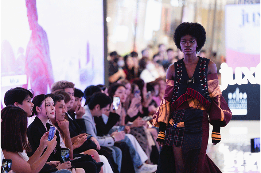 “JUXTAPOSED 2023 Hong Kong Fashion in Bangkok” เป็นความร่วมมือของทีมงานนวัตกรรมและเทคโนโลยีชั้นนำของฮ่องกงที่นำศาสตร์ล้ำสมัยมาใช้ในการจัดการแสดงแฟชั่นจนเกิดเป็นปรากฎการณ์ ใหม่ ผสานโลกจริงกับเสมือนจริงในบริเวณงานนิทรรศการที่โอบล้อมด้วยจอ LED สร้างสรรค์เป็นจักรวาลแห่งโลกเสมือนจริง เพื่อให้ผู้ชมดื่มด่ำ กับการจัดแสดงที่กระตุ้น ให้เกิดมุมมองอันหลากหลาย ต่อแก่นแท้ ที่สร้างสรรค์โดยดีไซน์เนอร์ ตลอดจนจินตนาการไร้ขีดจำกัดในการสร้างสรรค์แฟชั่นในโลกจริงและเสมือนจริง