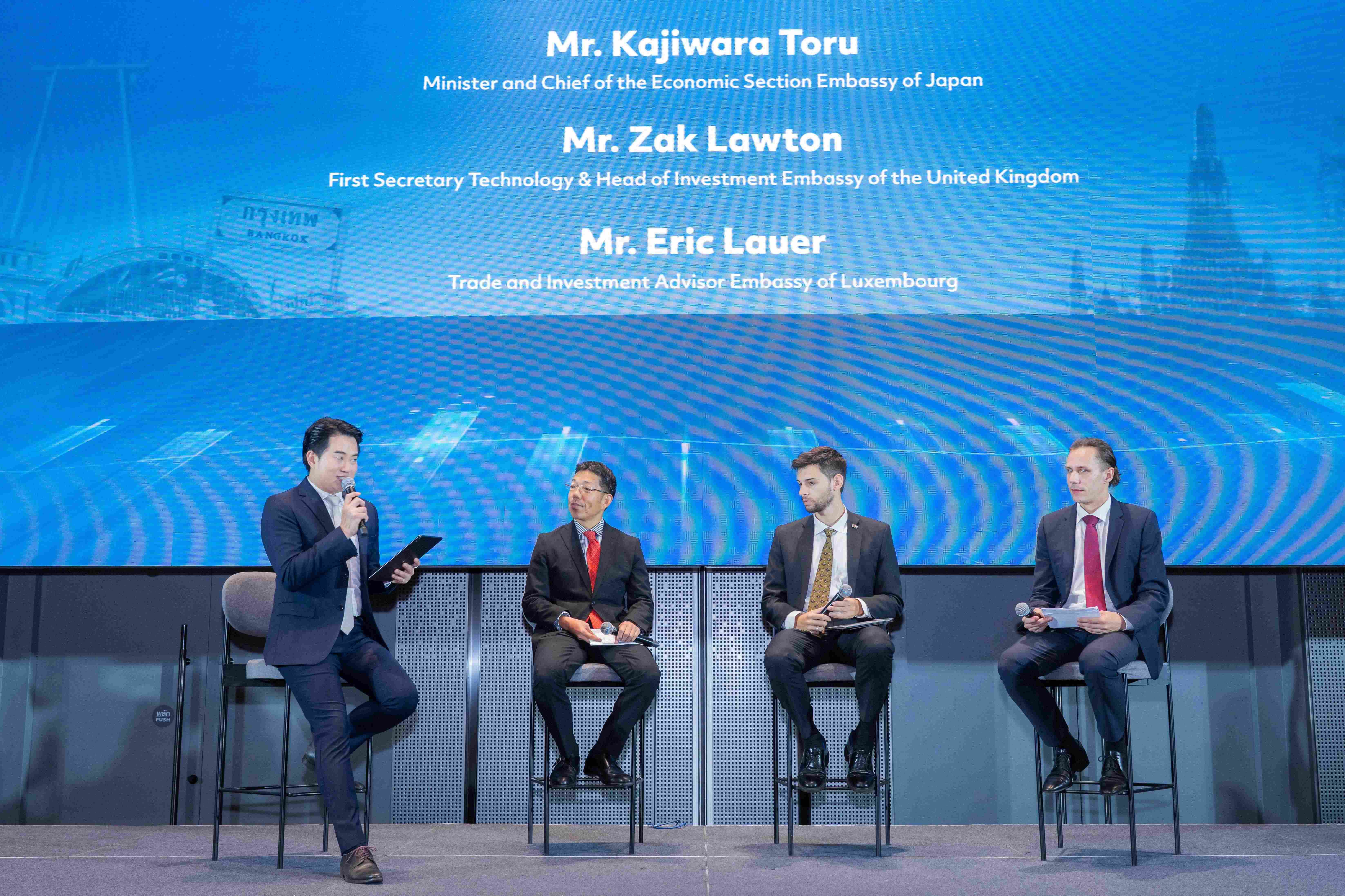 Mr. Eric Lauer, Trade and Investment Advisor, Embassy of Luxembourg กล่าวว่านโยบายหลาย ๆ ด้านที่ไทยกำลังดำเนินการเป็นไปในทิศทางที่ดีแล้ว ไม่ว่าจะเป็นการปรับปรุงขั้นตอนทางกฎระเบียบให้คล่องตัวมากขึ้น หรือการลงทุนด้านการศึกษาและการฝึกอบรมวิชาชีพ อีกทั้งประเทศไทยยังมีความโดดเด่นมากใน 2 ด้าน ได้แก่ ความมุ่งมั่นของประเทศในการสนับสนุนทางการเงินเพื่อความยั่งยืน ซึ่งสอดคล้องกับเป้าหมายการพัฒนาที่ยั่งยืนขององค์การสหประชาชาติ (SDGs) และ การเติบโตของเทคโนโลยีทางการเงิน (FinTech) โดยประเทศไทยเป็นประเทศแรกในเอเชียที่มี Sustainability Linked Bonds หรือหุ้นกู้ส่งเสริมความยั่งยืน พร้อมกล่าวถึงความร่วมมือในโครงการ ASEAN Startup Exchange ระหว่างลักเซมเบิร์กและอาเซียน เพื่อเปิดโอกาสให้สตาร์ทอัพในแต่ละประเทศได้เรียนรู้และแลกเปลี่ยนองค์ความรู้และเทคโนโลยีระหว่างกัน