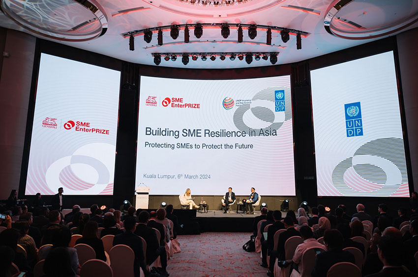 เจนเนอราลี่ กรุ๊ป ผนึกกำลัง โครงการพัฒนาแห่งสหประชาชาติ (United Nations Development Programme – UNDP) จัดประชุมใหญ่ “Building SME Resilience in Asia” เผยผลวิจัยด้านความยืดหยุ่นและความเสี่ยงของผู้ประกอบการกลุ่ม MSMEs ในเอเชียตะวันออกเฉียงใต้ โดยเฉพาะที่ประเทศไทย-มาเลเซีย เพื่อผลักดันความช่วยเหลือ พร้อมนำเสนอคู่มือป้องกันความสูญเสียสำหรับวิสาหกิจขนาดกลาง ขนาดย่อม และรายย่อย ตลอดจนการจัดตั้งกองทุนสนับสนุนและการสร้างสรรค์นวัตกรรมประกันภัย เพื่อเป็นกุญแจสู่ความมั่นคงและความยั่งยืนในการทำธุรกิจ รวมถึงการขยายโครงการ SME EnterPRIZE สู่ภูมิภาคเอเชีย