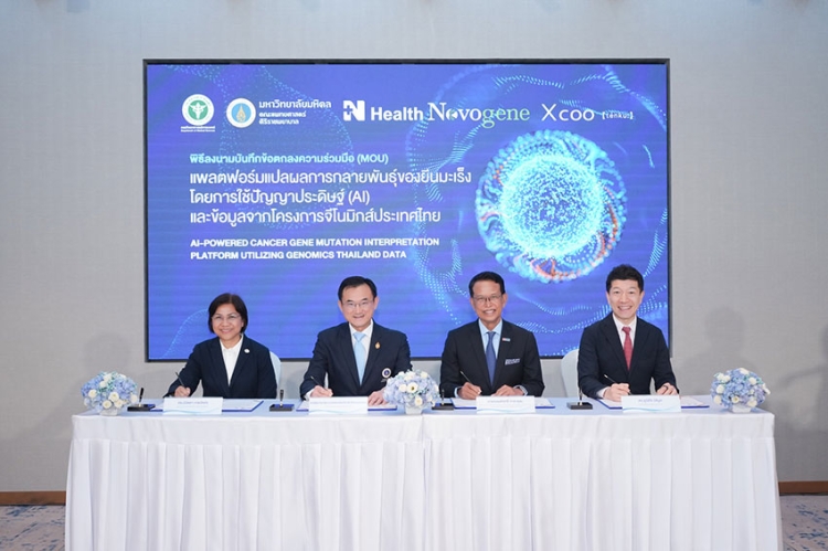 บริษัท เอ็นเฮลท์ โนโวยีน จีโนมิกส์ จำกัด ภายใต้การบริหารงานของ N Health ในเครือ BDMS ผู้ให้บริการตรวจวิเคราะห์พันธุกรรมที่ครอบคลุมทุกมิติของการดูแลและรักษาสุขภาพแบบเฉพาะบุคคล ผ่านห้องปฎิบัติการจีโนมิกส์โดยใช้เทคโนโลยีการตรวจวิเคราะห์ทางพันธุศาสตร์ขั้นสูงและได้มาตรฐานสากล จับมือศูนย์จีโนมิกส์ศิริราช คณะแพทยศาสตร์ ศิริราชพยาบาล มหาวิทยาลัยมหิดล และสถาบันชีววิทยาศาสตร์ทางการแพทย์ กรมวิทยาศาสตร์การแพทย์ กระทรวงสาธารณสุข พร้อมด้วยบริษัท เท็นกุ จำกัด ประเทศญี่ปุ่น ร่วมกันพัฒนาแพลตฟอร์มแปลผลการกลายพันธุ์ของยีนมะเร็ง โดยใช้ปัญญาประดิษฐ์ (AI) และข้อมูลจากโครงการจีโนมิกส์ประเทศไทย เพื่อพัฒนาระบบวิเคราะห์การกลายพันธุ์ของยีน ที่เกี่ยวข้องกับโรคมะเร็งโดยใช้เทคโนโลยี AI ซึ่งจะช่วยยกระดับการวินิจฉัยและการรักษาโรคมะเร็งในประเทศไทยให้มีความแม่นยำและเหมาะสมกับผู้ป่วยแต่ละรายมากยิ่งขึ้น