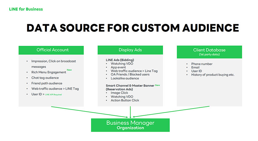 ธุรกิจกลุ่มการเงินและประกันในไทย ถือเป็นหนึ่งในกลุ่มธุรกิจใหญ่ที่ใช้ดาต้าเป็นตัวขับเคลื่อนการเติบโตได้เป็นอย่างดี ด้วยการใช้งานเครื่องมือ Business Manager ในการรวมทุกข้อมูลจากหลากหลายแหล่งที่มาไว้ในถังข้อมูลเดียวกัน เพื่อให้แบรนด์สามารถนำมาบริหารจัดการร่วมกัน และดึงมาใช้เพื่อแบ่งกลุ่มลูกค้าในการสื่อสาร ทำการตลาดแบบ Cross-Targeting บน LINE ได้อย่างมีประสิทธิภาพ ไม่ว่าจะเป็นข้อมูลพฤติกรรมลูกค้าที่เกิดขึ้นบน LINE OA เช่น การคลิกข้อความบรอดแคสต์หรือริชเมนู ข้อมูลที่ได้จากการติด Tag ฯลฯ พฤติกรรมที่เกิดขึ้นต่อโฆษณาบน LINE เช่น การรับชม การคลิกโฆษณา ทั้งโฆษณาที่มาจากระบบประมูลผ่าน LINE Ads และโฆษณาในตำแหน่ง Smart Channel และ Master Banner เป็นต้น อีกทั้งแบรนด์ยังสามารถเพิ่มข้อมูล 1st Party Data เดิมที่แบรนด์มี เช่น เบอร์โทรศัพท์ อีเมล์ User ID มาร่วมเก็บไว้ในถังข้อมูลเดียวกัน เพื่อวิเคราะห์แบ่งกลุ่มร่วมกันได้อีกด้วย โดยจากผลทดสอบ การใช้ Business Manager สำหรับทำการตลาดแบบ Cross-Targeting บน LINE สามารถช่วยเพิ่ม CTR ได้มากถึง 1.46 เท่า และหากมีการใช้ข้อมูล 1st Party Data ร่วมด้วย จะช่วยเพิ่มผล CTR สูงถึง 1.76 เท่าเลยทีเดียว จึงทำให้กลุ่มธุรกิจการเงินและประกันในไทย เริ่มมีการเปิดใช้งาน Business Manager ในปีนี้เพิ่มมากขึ้นจากปี 2023 ถึง 90% และ 90% ของกลุ่มดังกล่าว เน้นความต้องการดึงข้อมูลพฤติกรรมต่อโฆษณาบน LINE เป็นสำคัญ