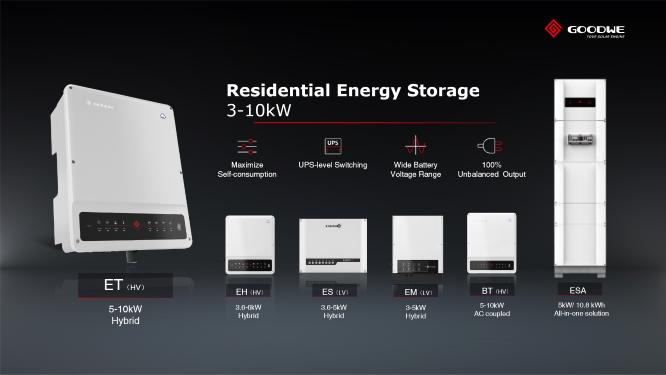 ในส่วน “ระบบการจัดเก็บพลังงาน” สำหรับที่อยู่อาศัยเพียงกลุ่มเดียว วิศวกรของกู๊ดวี ได้สร้างผลิตภัณฑ์ที่หลากหลาย ทั้งคุณสมบติและขนาดกำลังไฟฟ้า ตั้งแต่ 3 – 10kW ทั้ง 1 เฟสและ 3 เฟส จากผลิตภัณฑ์เดียวไปจนถึงระบบที่ทำงานได้อย่างสมบูรณ์ซึ่งรวมอินเวอร์เตอร์และแบตเตอรี่ในดีไซน์ไร้ที่ติของซีรีส์ ESA