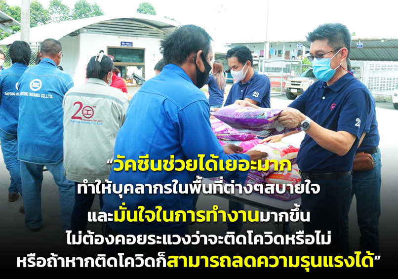 “วัคซีนช่วยได้เยอะมาก เพราะบางโรงงานมีนโยบายให้ผู้รับเหมาที่จะเข้าไปทำงานในอนาคตได้รับการฉีดวัคซีนก่อนเข้าในพื้นที่ของโรงงาน โดยวัคซีนสร้างภูมิคุ้มกันหมู่ได้ และเนื่องจากการทำงานรับเหมาก่อนสร้างในเขตนิคมอุตสาหกรรมนั้นเป็นการทำงานของหลายบริษัทในพื้นที่เดียวกัน ดังนั้นฉีดวัคซีนจึงทำให้บุคลากรที่ทำงานในพื้นที่ต่างๆมีความสบายใจและมั่นใจในการทำงานมากขึ้น ไม่ต้องคอยระแวงระหว่างทำงานว่าจะติดโควิดหรือไม่ ถ้าหากติดโควิดก็สามารถลดความรุนแรงได้ และเนื่องจากบริษัทอยู่ในเขตพื้นที่สีแดงเข้มและได้รับสิทธิ์ในการฉีดจากสำนักงานประกันสังคม จึงมีการรณรงค์ให้พนักงานและคนในองค์กรไปรับการฉีดวัคซีนขณะนี้ได้รับการฉีดวัคซีนแล้วมากกว่า 90% ของบุคลากรทั้งหมด”