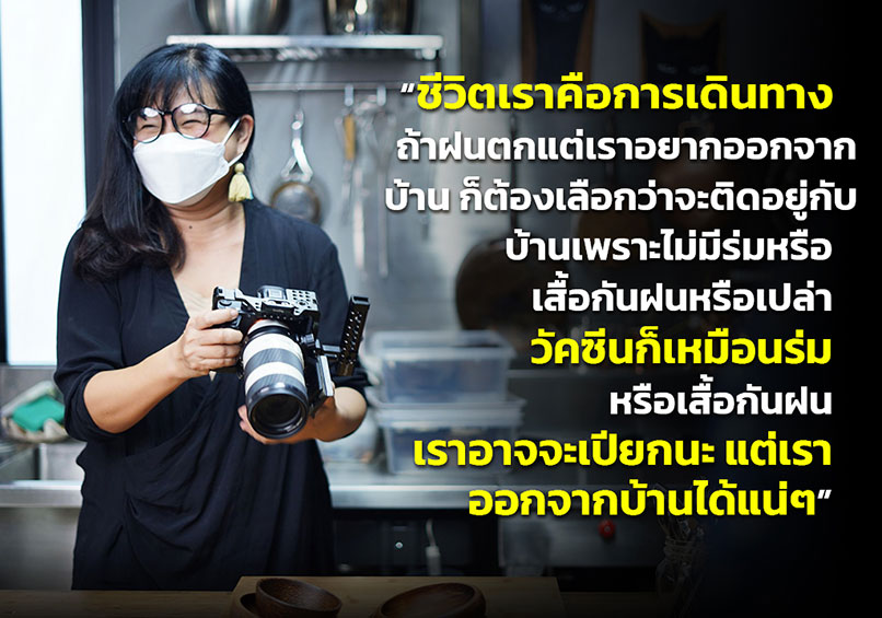 สำหรับคุณนฤมล ผู้มักต้องออกไปทำงานนอกสถานที่และพบปะคนมากหน้าหลายตา วัคซีนคือตัวขจัดความกลัว