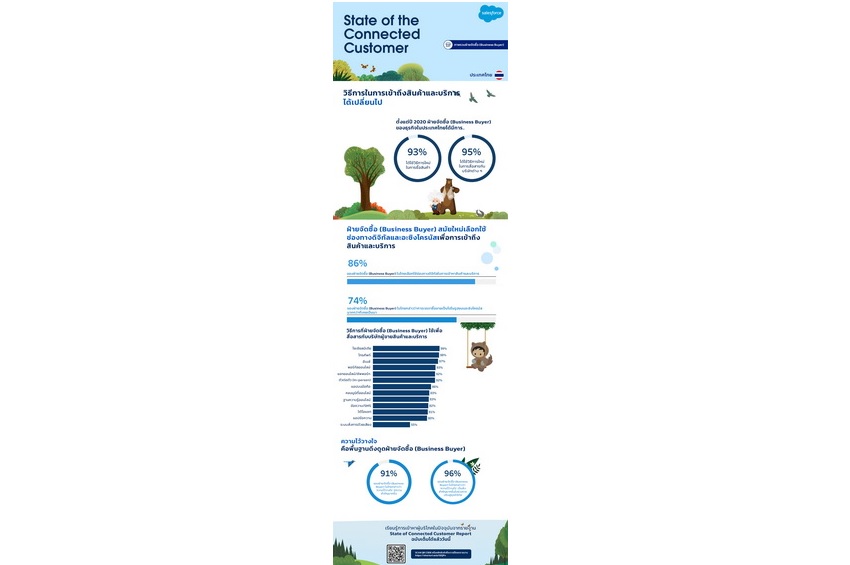 คุณกิตติพงษ์ อัศวพิชยนต์ รองประธานประจำภูมิภาคและกรรมการผู้จัดการ เซลส์ฟอร์ซ ประเทศไทย กล่าวว่า “รายงาน State of the Connected Customer ฉบับใหม่ของเราได้สำรวจผู้บริโภคทั่วไปและฝ่ายจัดซื้อขององค์กรหรือ Business Buyer กว่าหลายพันรายทั่วโลก โดยเจาะลึกไปถึงความเปลี่ยนแปลงของความไว้วางใจและความภักดีที่มีผลต่อความสัมพันธ์ระหว่างแบรนด์และลูกค้า ซึ่งในวันนี้ สิ่งสำคัญสำหรับธุรกิจคือการที่พวกเขาต้องสามารถทำความเข้าใจว่าลูกค้าแต่ละรายต้องการอะไร เพื่อที่องค์กรนั้น ๆ จะสามารถสร้างให้เกิดความไว้วางใจและรักษาให้คงอยู่ ซึ่งนี่ถือเป็นกุญแจสำคัญของการดูแลและสร้างประสบการณ์ที่ดีให้กับลูกค้า”