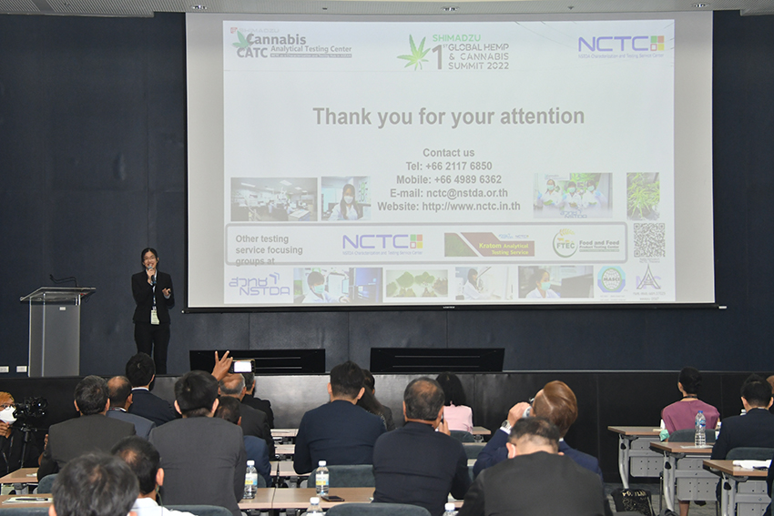 โดยศูนย์บริการวิเคราะห์ทดสอบ (NCTC) ร่วมกับ Shimadzu Asia Pacific และบริษัท พาราไซแอนติฟิค จำกัด จัดงาน Shimadzu 1st Global Hemp & Cannabis Summit 2022 เพื่อเปิดพื้นที่ในการรับฟังความต้องการของผู้ประกอบการและผู้ที่ต้องการนำกัญชา กัญชง ไปใช้ประโยชน์เพื่อพัฒนาอุตสาหกรรมในประเทศ โดยมีนายสุชาติ ไตรแสงรุจิระ ที่ปรึกษารัฐมนตรีว่าการกระทรวงอุตสาหกรรม เป็นประธานเปิดงาน พร้อมด้วย Mr. Tetsuya Tanigaki กรรมการผู้จัดการ Shimadzu (Asia Pacific) ประเทศสิงคโปร์ คุณพูศักดิ์ หิรัณยตระกูล กรรมการผู้จัดการ บริษัท พาราไซแอนติฟิค จำกัด ผศ.สุชาดา ไชยสวัสดิ์ ผู้อำนวยการศูนย์วิเคราะห์ทดสอบยาชีววัตถุ (BPCL) มหาวิทยาเทคโนโลยีพระจอมเกล้าธนบุรี และ ดร.ณฏฐพล วุฒิพันธุ์ ผู้อำนวยการศูนย์บริการวิเคราะห์ทดสอบ สวทช. เข้าร่วมงาน