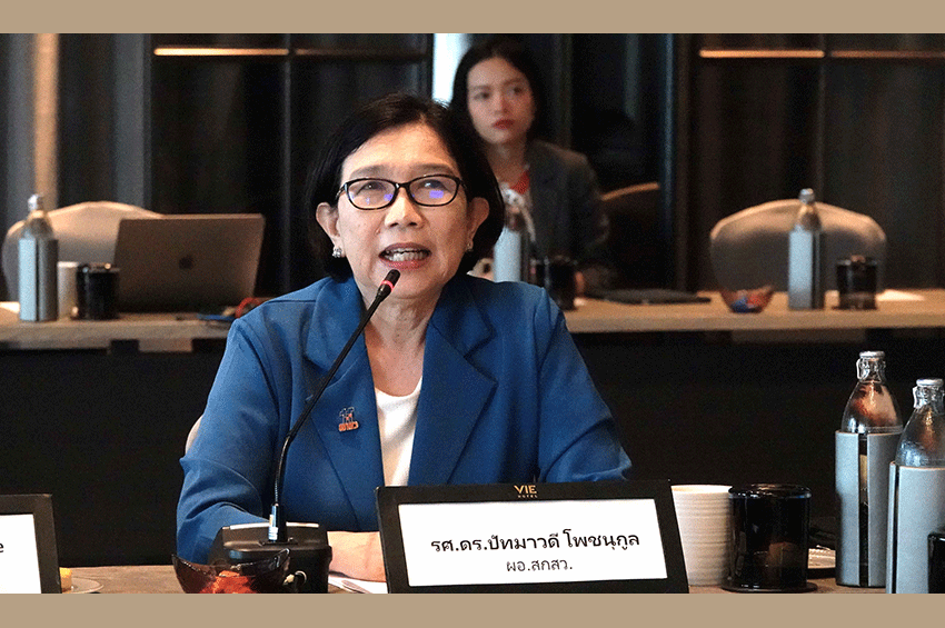 จากนั้น รองศาสตราจารย์ ดร.ปัทมาวดี โพชนุกูล ผู้อำนวยการ สกสว. และ รศ.ดร.สิรี ชัยเสรี ผู้อำนวยการ บพข. ได้เปิดเวทีแลกเปลี่ยนแนวทางการยกระดับการพัฒนานโยบายด้านวิทยาศาสตร์ เทคโนโลยีและนวัตกรรมของไทยร่วมกับผู้บริหาร กสว. สกสว. สอวช. บพข.และประธานหน่วยบูรณาการเชิงประเด็นยุทธศาสตร์ สกสว. เพื่อมุ่งสู่การเพิ่มความสามารถด้านการแข่งขันของประเทศต่อไปในอนาคตอันใกล้ ซึ่งสอดคล้องกับนโยบายของ สกสว. ที่เป็นหน่วยงานกลางของประเทศ มีหน้าที่ในการส่งเสริม สนับสนุน และขับเคลื่อนระบบวิจัยและนวัตกรรมของประเทศในทุกด้าน เพื่อให้เกิดการพัฒนาประเทศอย่างสมดุลและยั่งยืน ที่ประชุมเห็นตรงกันว่า ประเทศไทยยังต้องมีเป้าหมายที่ชัดเจน โดย BCG economy ยังเป็นประเด็นสำคัญที่เหมาะสมกับบริบทประเทศที่มีทรัพยากรที่หลากหลายและมีศักยภาพ แต่อาจต้องมีแนวทางการพัฒนาที่มองไปยังตลาดโลกมากขึ้น โดยแนวทางของการเลือกประเด็นสำคัญที่จะมุ้งเน้นอาจพิจารณาทั้งส่วนของความต้องการของการตลาด และโอกาสในการเติบโตของเทคโนโลยี ทั้งนี้แนวทางการพัฒนาเทคโนโลยีที่สร้างมูลค่าการตลาดได้จริงจึงต้องดึงภาคเอกชนและการบูรณาการของทุกภาคส่วนเข้ามามีส่วนร่วม เพื่อให้เกิดการปรับตัวได้ทันต่อสถานการณ์