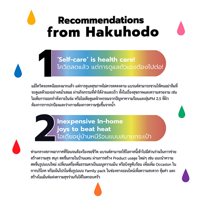 สถาบันวิจัยความเป็นอยู่ฮาคูโฮโด อาเซียน (ประเทศไทย) ได้แบ่งปันมุมมองใหม่ให้กับแบรนด์ เพื่อให้ปรับตัวให้เข้ากับสถานการณ์นี้ไว้ว่า