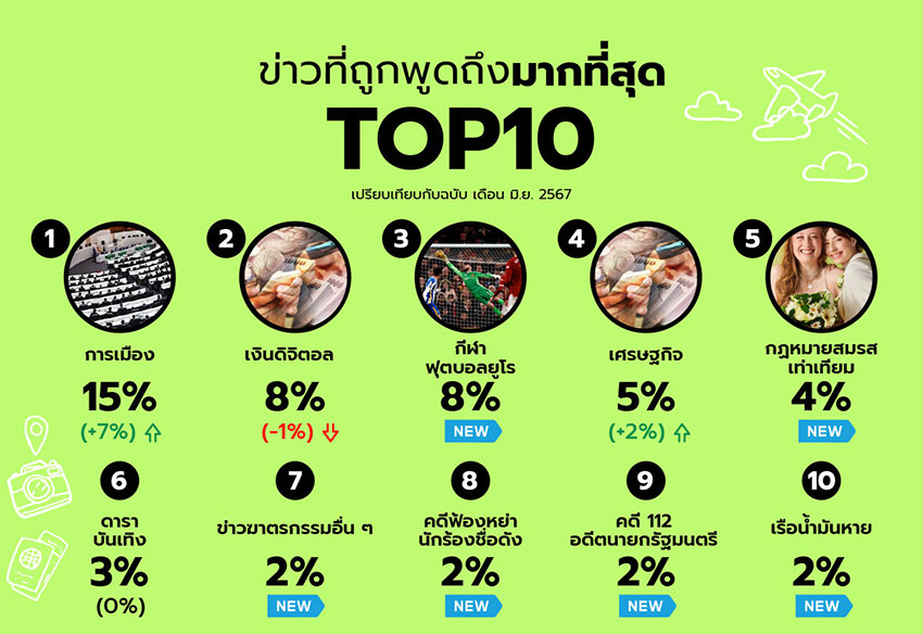 ความสนใจข่าวที่เกี่ยวข้องกับโควิดฯ ซาลงอย่างต่อเนื่อง ในขณะที่ให้ความสนใจกับการเปลี่ยนแปลง และเริ่มต้นกับสิ่งใหม่ๆ เพื่อกลับมาใช้ชีวิตอีกครั้ง เช่น กระแสผู้ว่าฯ คนใหม่ ข่าวเกี่ยวกับปากท้อง เงินเฟ้อ และสภาวะเศรษฐกิจ