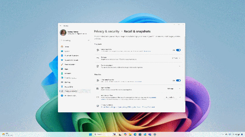 ในการใช้งานฟีเจอร์ Recall ผู้ใช้สามารถเลือกได้ว่าจะให้บันทึกภาพหน้าจอหรือไม่ หากเลือกให้บันทึก จะต้องเปิด Windows Hello เพื่อยืนยันตัวตนก่อนใช้งาน นอกจากนี้ Recall ยังมีระบบกรองข้อมูลสำคัญ เช่น หมายเลขบัตรเครดิตหรือเลขประจำตัวบัตรประชาชน เพื่อปกป้องข้อมูลส่วนตัว ทำให้สามารถใช้งานได้อย่างสบายใจ