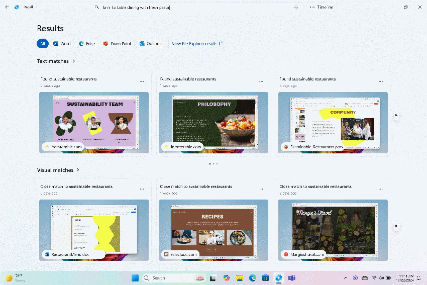 การค้นหาไฟล์ที่ถูกต้อง ซึ่งรวมถึงเอกสาร การตั้งค่า หรือรูปภาพ บนคอมพิวเตอร์ Copilot+ PCs จะกลายเป็นเรื่องง่ายยิ่งกว่าเดิม ด้วยการค้นหาด้วยเสียง เหมือนกับการพูดว่า "ปาร์ตี้บาร์บีคิว" วันนี้คุณสามารถอธิบายสิ่งที่คุณต้องการค้นหาบน Windows ได้แล้ว โดยคุณไม่จำเป็นต้องจดจำชื่อไฟล์ ตำแหน่งการตั้งค่า หรือแม้แต่กังวลเรื่องการสะกดคำอีกต่อไป ขอเพียงพิมพ์สิ่งที่อยู่ในใจคุณเพื่อค้นหาบน Copilot+ PC ซึ่งคุณยังสามารถค้นหารูปภาพใน OneDrive ด้วยการอธิบายเนื้อหาในลักษณะเดียวกันได้ จากขุมพลังการประมวลผลที่มีประสิทธิภาพติด 40 อันดับแรกบน Copilot+ PC ที่สามารถทำงานได้แบบออฟไลน์ การค้นหาที่ได้รับการเพิ่มประสิทธิภาพนี้จะเปิดให้ใช้งานเป็นครั้งแรกใน File Explorer และจะขยายไปยัง Windows Search รวมถึงการตั้งค่าต่าง ๆ ในอีกไม่กี่เดือนข้างหน้า