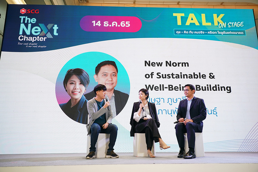 จัดเต็ม! Talk On stage เวทีอัพเดทเมกะเทรนด์ธุรกิจแห่งอนาคตกับกูรูหลาก Gen พร้อม “คุย-คิด-ครีเอท” โซลูชันเจ๋ง ๆ ที่ทำให้การใช้ชีวิตในวันนี้และอนาคตง่ายขึ้น ที่สำคัญ! รักษ์โลก อาทิ วันที่ 13 ธ.ค. 2565 เจาะลึก SCGJWD ดิจิทัลโลจิสติกส์ใหญ่สุดในอาเซียน, Ready for Our Next Chapter เตรียมตัวให้พร้อมสำหรับธุรกิจในอนาคต, ก่อสร้างยุคใหม่ให้โลกไม่ร้อน" Key content: Green Construction เทคโนโลยี การก่อสร้างสมัยใหม่เพื่อตอบโจทย์ Net Zero วันที่ 14 ธ.ค. 2565 เริ่มด้วย New Norm of Sustainable & Well-being Building, มารู้จัก…SMART LIVING ธุรกิจเพื่อชีวิตอนาคต และ Green Solution for Future construction ล้ำด้วยเทคโนโลยีระดับโลก พลิกโฉมวงการก่อสร้าง สู่สังคมคาร์บอนต่ำ ตามลำดับ ส่วนวันที่ 15 ธ.ค. 2565 พบกับ New Gen’s Innovation Idea for Smart Living และ ESG : เคล็ดลับยกระดับธุรกิจสู่เวทีโลก ปิดวันสุดท้าย 16 ธ.ค. 2565 กับเรื่องราว Innovation & Technology for Better Living & Better World และ Green Mission ภารกิจสีเขียว