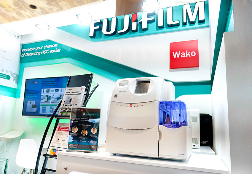 ภายในงานประชุมวิชาการประจำปี ครั้งที่ 18 สมาคมโรคตับแห่งประเทศไทย “THASL Annual Meeting 2023” ฟูจิฟิล์มได้นำเสนอเทคโนโลยีการตรวจวัดสารบ่งชี้มะเร็งตับในเลือดจากญี่ปุ่นอย่าง AFP-LP3 รวมถึงโซลูชัน Fully Automated Immunoanalyzer อย่าง “μTASWako i30” เครื่องตรวจวิเคราะห์สารบ่งชี้มะเร็งตับในเลือดแบบครบวงจรที่เปี่ยมด้วยประสิทธิภาพและความแม่นยำ สามารถรายงานผลเลือดได้ภายใน 9 นาที และรายงานผลเลือดได้มากถึง 25 รายการต่อชั่วโมง นับเป็นอีกหนึ่งโซลูชันสำคัญที่เข้ามาเสริมทัพให้แก่โซลูชันทางการแพทย์ด้านการวินิจฉัยโรคที่ครบวงจรของฟูจิฟิล์ม ในฐานะผู้นำด้าน One-Stop, Total Healthcare Solution ระดับโลก การเดินหน้าสร้างความตระหนักรู้เรื่องการคัดกรองมะเร็งและการฉีควัคซีนป้องกันโรคในประเทศไทยสอดคล้องกับพันธกิจในการยกระดับวงการสาธารณสุขทั่วโลก ภายใต้วิสัยทัศน์ของฟูจิฟิล์มในการช่วยแก้ไขปัญหาทางสังคมและช่วยสร้างสังคมที่ยั่งยืน เพื่อสุขภาวะที่ดีขึ้นของทุกคน