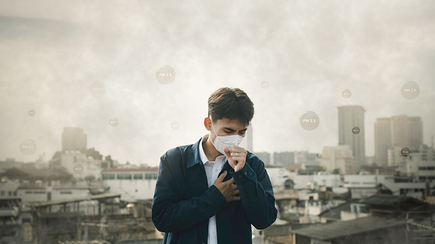ทั้งนี้ ฝุ่นพิษ PM 2.5 คือภัยเงียบที่กระตุ้นการเกิดโรคร้าย โดยเฉพาะใน 5 กลุ่มเสี่ยง ได้แก่ 1. ผู้ที่สูบบุหรี่ ฝุ่น PM 2.5 เร่งการเกิดโรคถุงลมโป่งพอง และยังเป็นหนึ่งในสารก่อมะเร็งปอด โดยคนทั่วไปสามารถเพิ่มความเสี่ยงต่อการเกิดมะเร็งปอดได้มากถึง 1.4 เท่า แต่สำหรับคนที่สูบบุหรี่จะยิ่งเพิ่มความเสี่ยงขึ้นเป็น 2 เท่า 2. ผู้ที่เป็นภูมิแพ้ จะมีความไวต่อการกระตุ้นจากฝุ่น PM 2.5 หรือสารก่อภูมิแพ้ ทำให้สมรรถภาพปอดลดลง และเกิดอาการหอบหืดกำเริบ 3. ผู้ที่มีความเสี่ยงสูงหรือเป็นโรคหัวใจและหลอดเลือด จากงานวิจัยสรุปว่าฝุ่น PM 2.5 เพิ่มอัตราการเกิดโรคความดันโลหิตสูง ภาวะหลอดเลือดแข็ง ส่งผลให้หลอดเลือดตีบตัน ซึ่งทำให้เกิดอาการหัวใจขาดเลือด หัวใจเต้นผิดจังหวะ หรืออัมพฤกษ์ อัมพาตได้ 4. ผู้ที่มีความเสี่ยงโรคมะเร็ง ฝุ่น PM 2.5 ถือเป็นสารก่อมะเร็งที่มีความร้ายแรง อาทิ โพลีไซคลิก อะโรมาติก ไฮโครคาร์บอน และโลหะหนักบางชนิด ที่จะเข้าไปทำลาย DNA RNA ทำให้เกิดการกลายพันธุ์ของเซลล์ เกิดเป็นเซลล์มะเร็ง และ 5. ผู้ที่ระบบภูมิต้านทานต่ำ หรือไม่สมบูรณ์ เช่น เด็กเล็ก ผู้สูงอายุ หญิงตั้งครรภ์ และผู้ที่มีโรคประจำตัว ควรหลีกเลี่ยงฝุ่นขนาดเล็ก ที่สามารถทำลายระบบภูมิคุ้มกันร่างกายได้โดยตรง ทำให้โอกาสติดเชื้อระบบทางเดินหายใจเพิ่มมากขึ้นได้