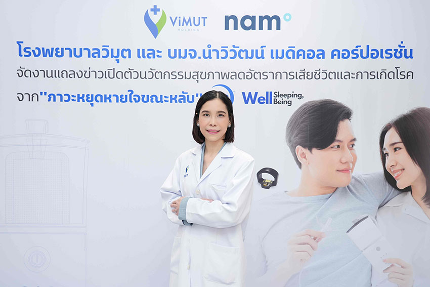 โรงพยาบาลวิมุต โรงพยาบาลเอกชนชั้นนำใจกลางกรุงเทพฯ เดินเกมรุกจับตลาดมาแรง Sleep Economy หรือเศรษฐกิจการนอน สอดรับเมกะเทรนด์สุขภาพน่าจับตาหลังคนทั่วโลกเผชิญหลายปัญหาด้านการนอนหลับมากขึ้นอย่างน่าเป็นห่วง ล่าสุดผนึกความร่วมมือกับ บริษัท นำวิวัฒน์ เมดิคอล คอร์ปอเรชั่น จำกัด (มหาชน) หรือ NAM ผู้นำด้านการผลิต นำเข้า และจัดจำหน่ายเครื่องมือและอุปกรณ์ทางการแพทย์ชั้นนำของไทย ร่วมเสริมทัพเฮลท์เทคเพื่อยกระดับคุณภาพการนอนหลับด้วยการเปิดตัวเทคโนโลยี iNAP (Intraoral Negative Airway Pressure Therapy) ช่วยรักษาอาการนอนกรนที่คุกคามคนไทยกว่า 25% ซึ่งเป็นสัญญาณเสี่ยงของภาวะหยุดหายใจขณะหลับ (Obstructive Sleep Apnea: OSA) ภัยเงียบคุกคามสุขภาพคนไทยกว่า 3 ล้านคน โดย รพ. วิมุตเผย เดินหน้าสร้างความตระหนักรู้เรื่องอันตรายจากการนอนกรนที่นำไปสู่ภาวะหยุดหายใจขณะหลับ ซึ่งหากไม่ได้รับการรักษา อาจส่งผลให้เกิดโรคร้ายแรงทั้งทางกายและจิตใจ เช่น อารมณ์แปรปรวนง่าย อ่อนเพลีย ง่วงนอนมากระหว่างวันจนเป็นอันตรายต่อชีวิต ความเสี่ยงในการเกิดโรคหัวใจ ความดันโลหิตสูง และโรคแทรกซ้อนอื่น ๆ ในระยะยาว พร้อมชวนคนไทยสังเกตตนเองและคนรอบตัว หากมีอาการนอนกรนอยู่เป็นประจำ ควรรีบพบแพทย์เพื่อทำการวินิจฉัยและรักษาต่อไป ทั้งนี้ เพื่อโอกาสในการกลับมาใช้ชีวิตได้อย่างมีคุณภาพและลดอัตราการเสียชีวิตที่ป้องกันได้