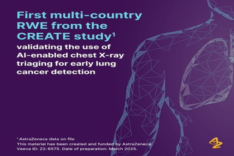 เมื่อเดือนมีนาคมที่ผ่านมา ในงานประชุม European Lung Cancer Congress (ELCC) 2025 ที่จัดขึ้น ณ กรุงปารีส แอสตร้าเซนเนก้าได้เปิดเผยผลการวิจัยเกี่ยวกับมะเร็งปอดภายใต้โครงการ CREATE ที่มีการใช้เครื่องมือ qXR-LNMS ซึ่งพัฒนาโดยบริษัท Qure.ai เพื่อแสดงประสิทธิภาพในการคัดกรองมะเร็งปอดจากภาพเอกซเรย์ทรวงอกซึ่งอาศัยเทคโนโลยีปัญญาประดิษฐ์ (AI) เป็นเครื่องมือช่วย โดยนวัตกรรมนี้ช่วยขยายโอกาสให้ประชาชนสามารถเข้าถึงการตรวจคัดกรองและการวินิจฉัยโรคด้วยวิธีที่ทันสมัยและมีความสะดวก