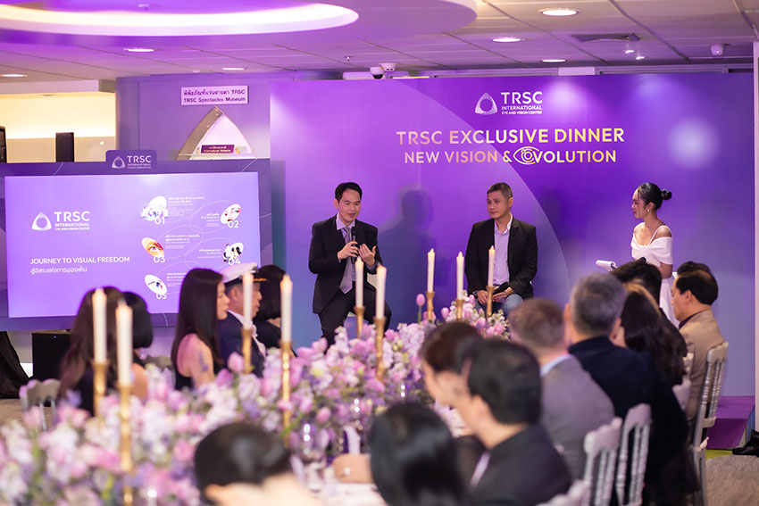 TRSC International Eye and Vision Center ศูนย์รักษาสายตาชั้นนำของไทย จัดงานเลี้ยงรับรองกับประสบการณ์สุดเอ็กซ์คลูซีฟ “TRSC Exclusive Dinner: New Vision and EYEvolution” ในวันที่ 25 กรกฎาคม 2568 ณ TRSC International Eye and Vision Center สาขาพระราม 4 เพื่อเฉลิมฉลองการยกระดับการให้บริการสู่การเป็นศูนย์ผ่าตัดแก้ไขสายตาและดูแลสุขภาพดวงตาแบบครบวงจร ขยายบริการใหม่ เลสิคสายตายาว ผ่าตัดสลายต้อกระจกพร้อมแก้ไขสายตาในผู้สูงอายุ เพื่อส่งมอบคุณภาพการมองเห็นไปพร้อมกับคุณภาพชีวิตที่ดียิ่งขึ้น โดยในงานนี้ ได้รับเกียรติจากเหล่าคนไข้คนดัง ทั้งคนไข้ที่มอบโอกาสให้ TRSC ดูแลสุขภาพดวงตาและคุณภาพการมองเห็นมายาวนานกว่า 27 ปี และคนไข้ใหม่จากหลากหลายวงการเข้าร่วมงาน และร่วมถ่ายทอดประสบการณ์การรับการดูแลรักษา การผ่าตัด และแรงบันดาลใจในการดูแลสุขภาพตาในแต่ละช่วงวัย สู่อิสระแห่งมองเห็นอย่างไร้กรอบ และเติมเต็มคุณภาพชีวิตในแบบที่ต้องการ อาทิ อัญรัตน์ พรประกฤต, CEO Jubilee Daimond, ตัน-อิง ภาสกรนที, พล ตัณฑเสถียร, ปอย ตรีชฎา หงษ์หยก, คิง สมจริง ศรีสุภาพ, จีน่า ญีนา, มิ้นต์ ชาลิดา วิจิตรวงศ์ทอง, ณภัสวรรณ จิลลานนท์, วัจน์นัย-ปณิธิ สนิทวงศ์ ณ อยุธยา, นัท มีเรีย อเล็กซานดรา เบนเนเดดตี้, อะตอม ชนกันต์ และภรรยา, แบงค์ ปิยะวัฒน์ Youtuber, นภัสนันท์ พันพึ่ง และท่านอื่นๆ อีกมากมาย ที่มาร่วมแบ่งปันประสบการณ์จากการเข้ารับบริการที่ TRSC Eye and Vision Center