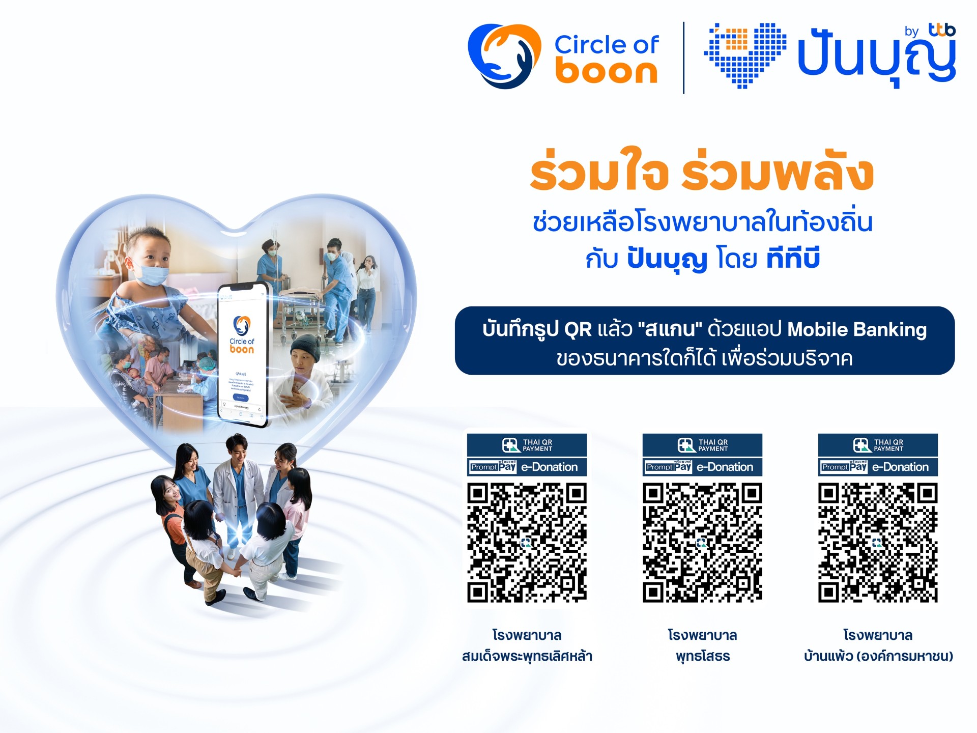 เพราะพลังแห่งการให้ เป็นวัฏจักรที่ไม่มีวันสิ้นสุด ทีทีบียกระดับบทบาทของธนาคารในฐานะผู้ขับเคลื่อนความยั่งยืนของสังคม กับการระดมเงินบริจาคเพื่อโรงพยาบาลท้องถิ่น ผ่านโครงการ “Circle of boon วัฏจักรพลังการแบ่งปัน” ที่ดำเนินการภายใต้ “ปันบุญ โดย ทีทีบี” ซึ่งผู้มีจิตศรัทธาสามารถร่วมบริจาคได้ทุกที่ทุกเวลา ผ่านเว็บไซต์ Punboon.org ที่ปลอดภัย เชื่อถือได้ และมีความโปร่งใสทุกขั้นตอน ให้ผู้บริจาคมั่นใจได้ว่า เงินทุกบาทส่งตรงถึงโรงพยาบาลอย่างแท้จริง และโรงพยาบาลท้องถิ่นได้ลงทะเบียน e-Donation กับกรมสรรพากร จึงเป็น